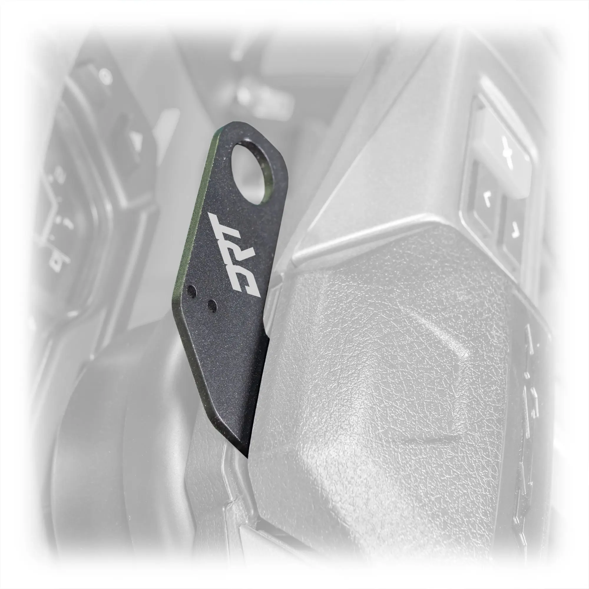 Made of 6061-T6 Aerospace grade aluminum and finished in DRT proprietary powder coat and laser engraved logo. This PTT plate is designed for operation by right hand. This DRT Motorsports Polaris 2020+ Steering Wheel Single Push-To-Talk Plate is compatible with