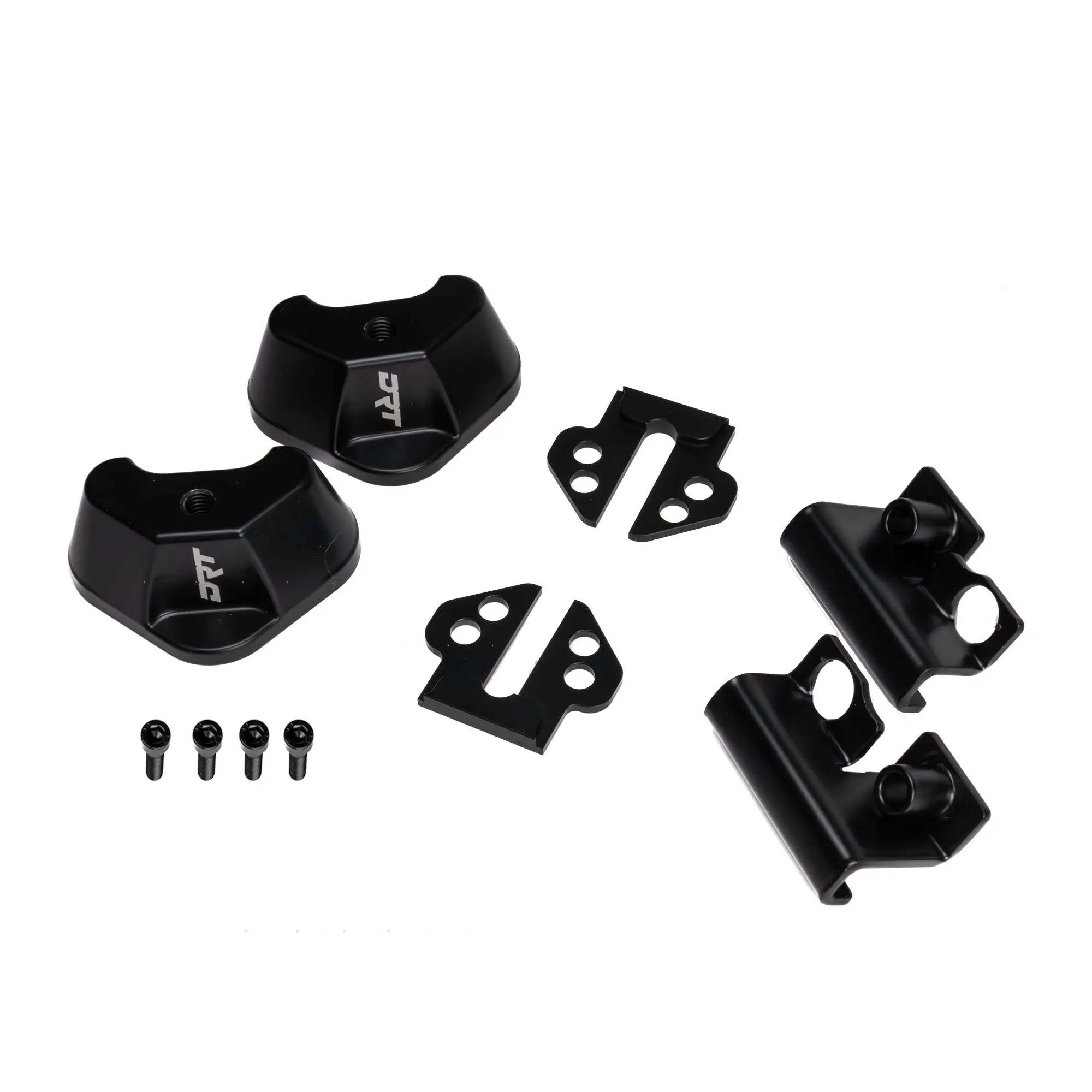 The aluminum components are machined from aerospace-grade 6061-T6 aluminum and laser engraved with the DRT logo for a finished look. A matte black e-coat helps protect the mounts while keeping the appearance clean and understated. A steel bracket installs on the back side to support the assembly and help keep everything in line. This is a bolt-in installation with minor drilling required. The box includes the mirror mounting kit components and installation hardware. Compatibility is limited to DRT Tactical Mirrors.