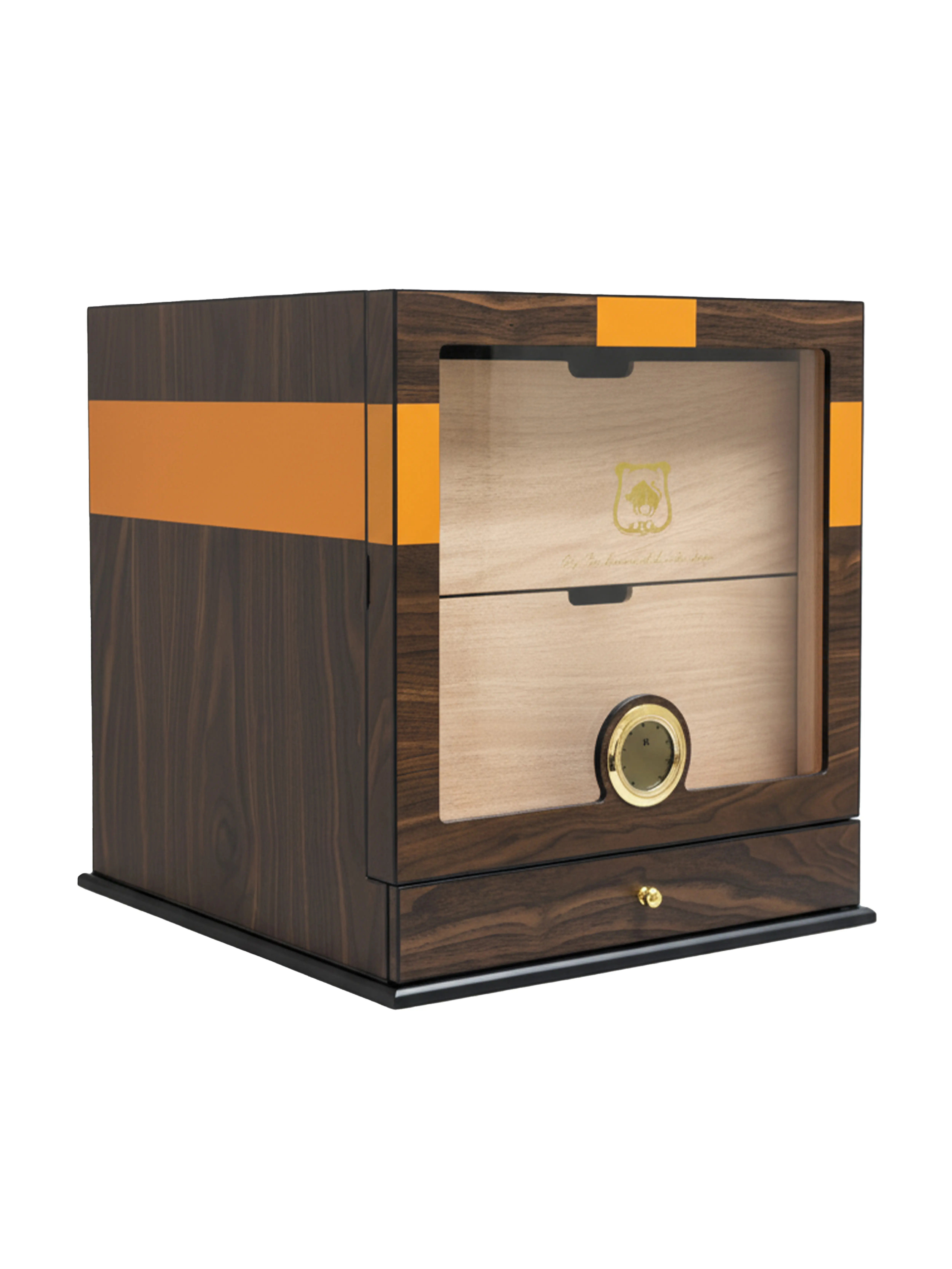 The Outside the Big Box takes everything you love about the original model and elevates it with expanded capacity and enhaced presence. Designed for collectors who need more room without compromising on aesthetics, this larger version features the same luxurious wood-grain finish, panoramic font window, and precision digital hygrometer, but with significantly greater storage space.