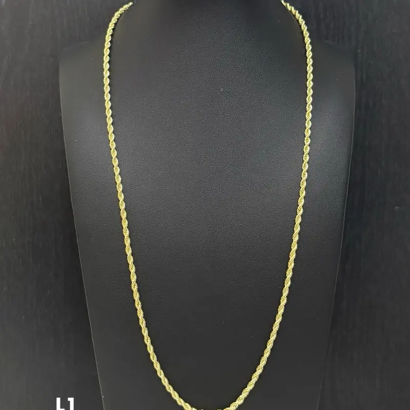 Crafted with thick 14K gold bonding over stainless steel, this chain gives you the luxury look of solid gold without the high price. The classic rope design catches light beautifully, making it perfect for both solo wear or layering.