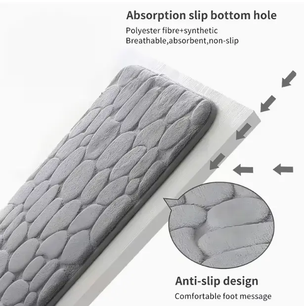 Pressure-Relieving Memory Foam: Thick, high-density memory foam core cushions your feet, relieving pressure and providing a warm, soft barrier against cold bathroom tiles.
