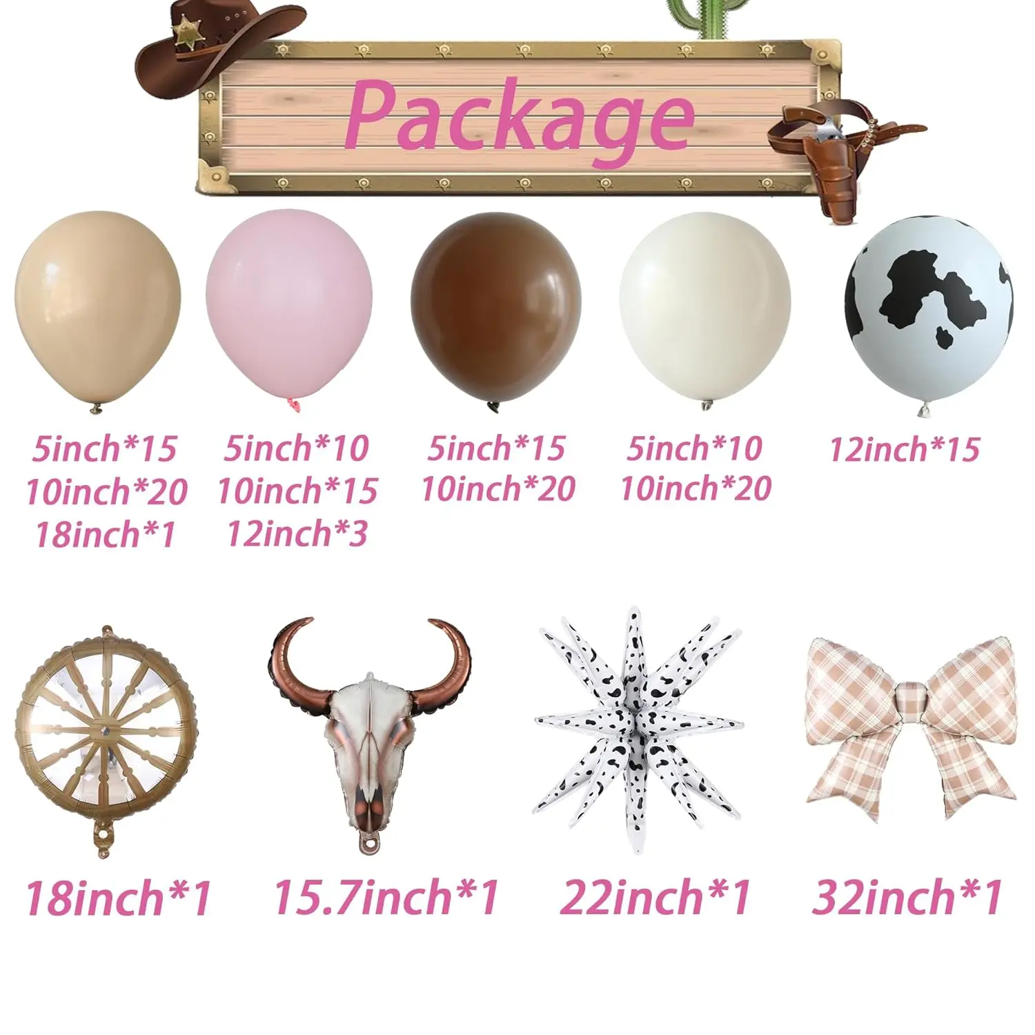 Cowgirl Party Balloon Kit Brown & Pink with Cow Head, Bow & Wagon Wheel Decorations for Western Theme