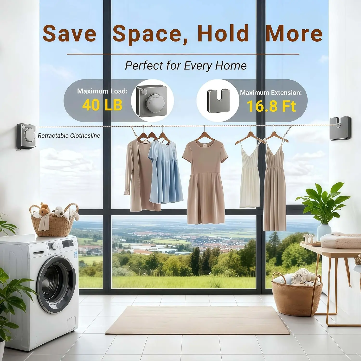 ·Space-Saving & Retractable: One-touch retractable line keeps areas tidy and minimalist