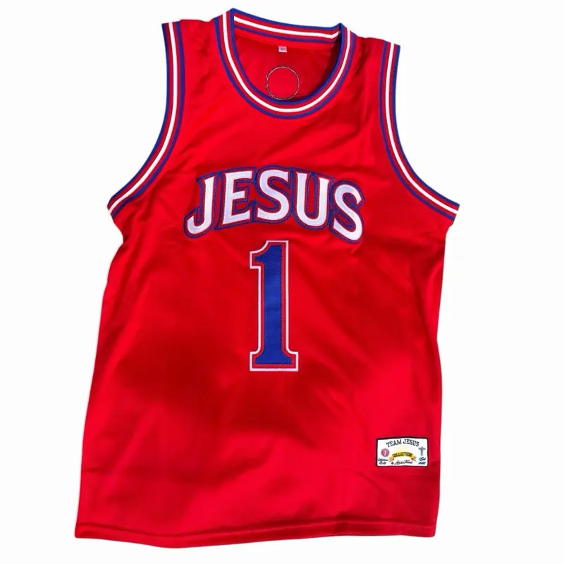 Bold faith meets premium streetwear. This red **Team Jesus** basketball jersey is designed to stand out with a clean athletic look and powerful message. Featuring **high-quality embroidered lettering and numbering**, it delivers a durable, elevated finish that feels just as good as it looks. The rich red colorway with contrasting trim gives it a classic court-inspired style, making it perfect for everyday wear, events, or repping your faith with confidence.