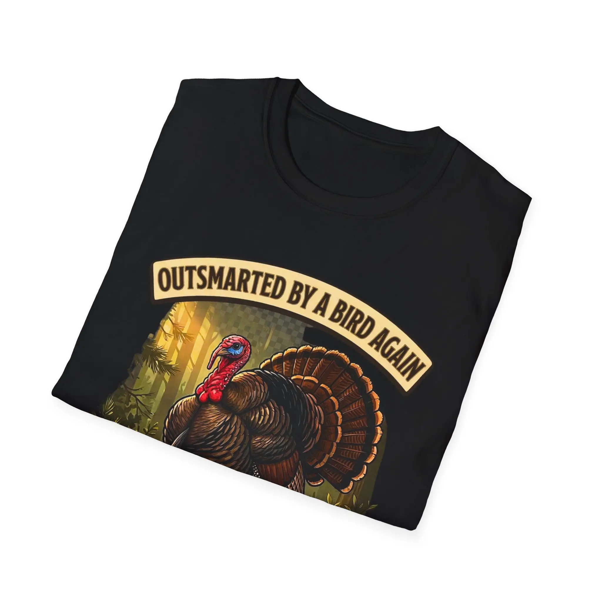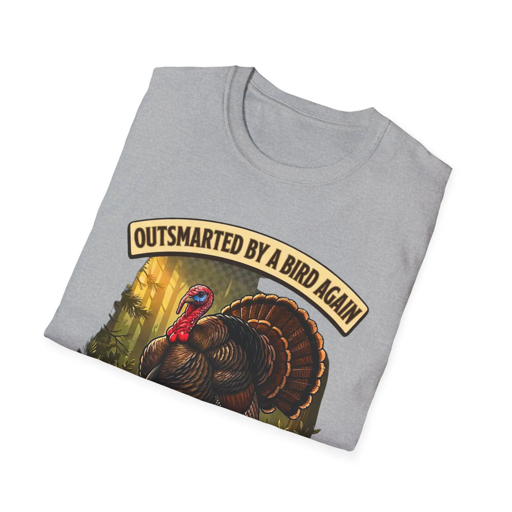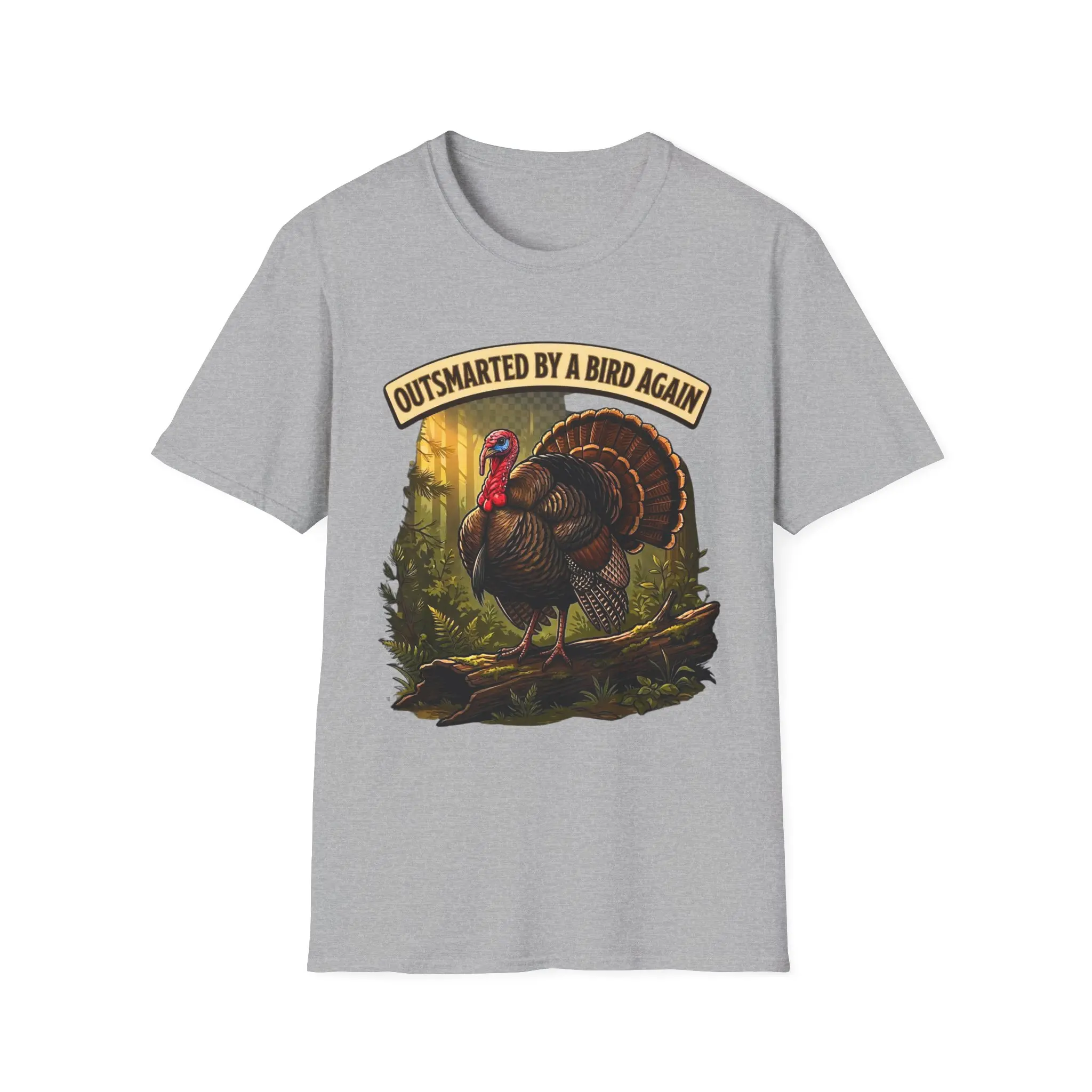 A comfortable, everyday tee that carries a wink of wilderness wit. Soft, breathable cotton and a classic crew cut keep this shirt easy to wear from morning chores to late‑afternoon trail breaks. The front features a detailed, vintage‑style turkey illustration beneath the banner "Outsmarted by a Bird Again," blending rustic humor with forest‑floor colors. It sits relaxed at the shoulders and drapes cleanly at the hem — the kind of shirt you pull on when you want to feel cozy, a little playful, and unmistakably outdoorsy.