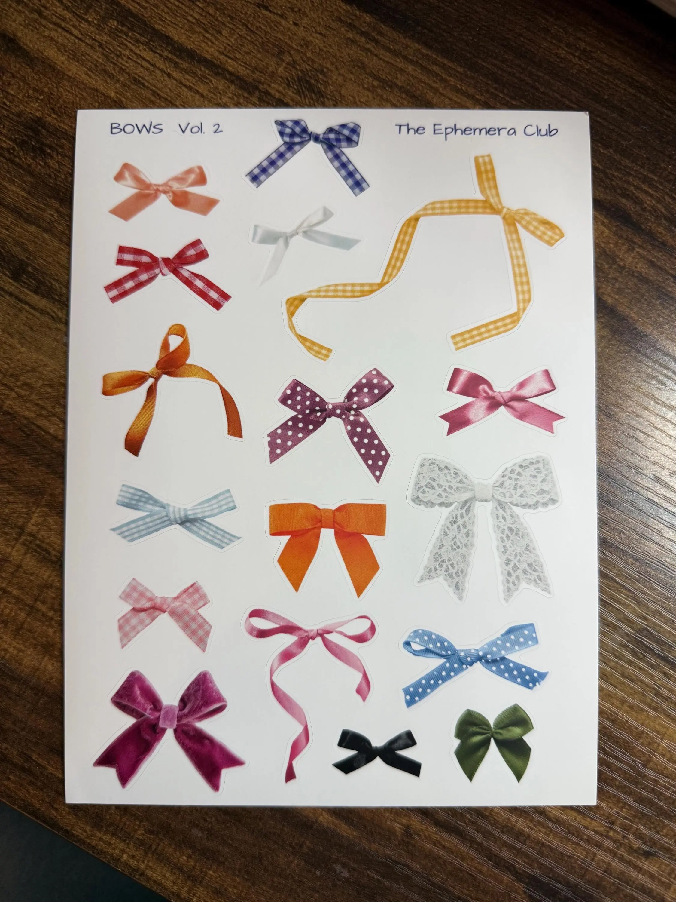 Bows Vol. 2 is here — a full sheet of delicate ribbon bows in gingham, velvet, satin, and lace textures. Perfect for layering, collaging, scrapbooking, journaling spreads, packaging, pen pal letters, and adding that soft, feminine touch to any project.