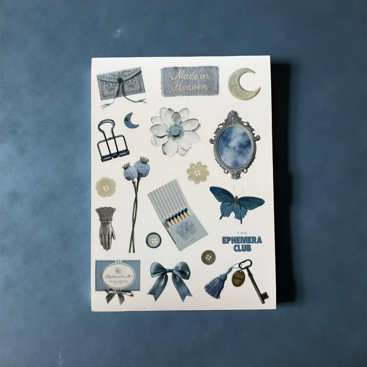 Step into a dreamy blue world filled with celestial charm and vintage-inspired ephemera 💙