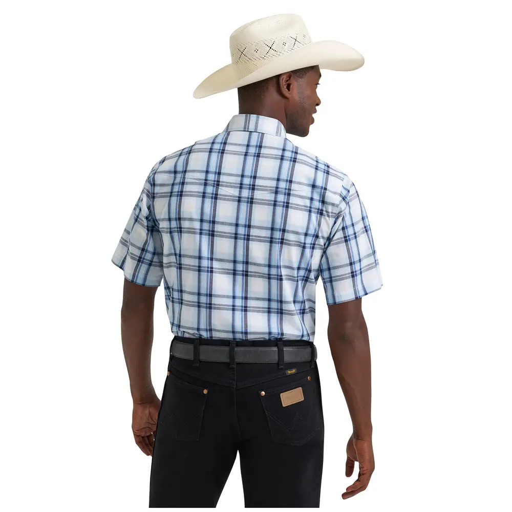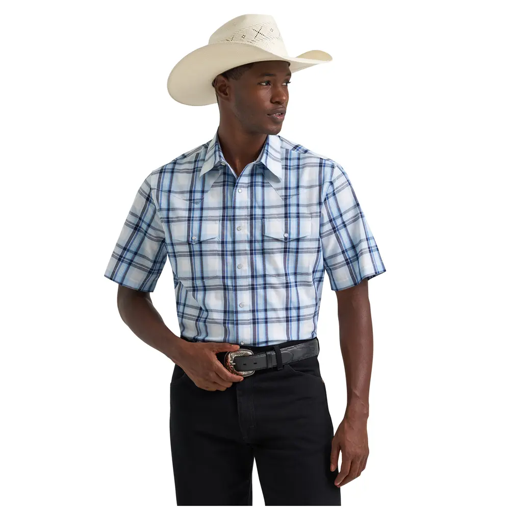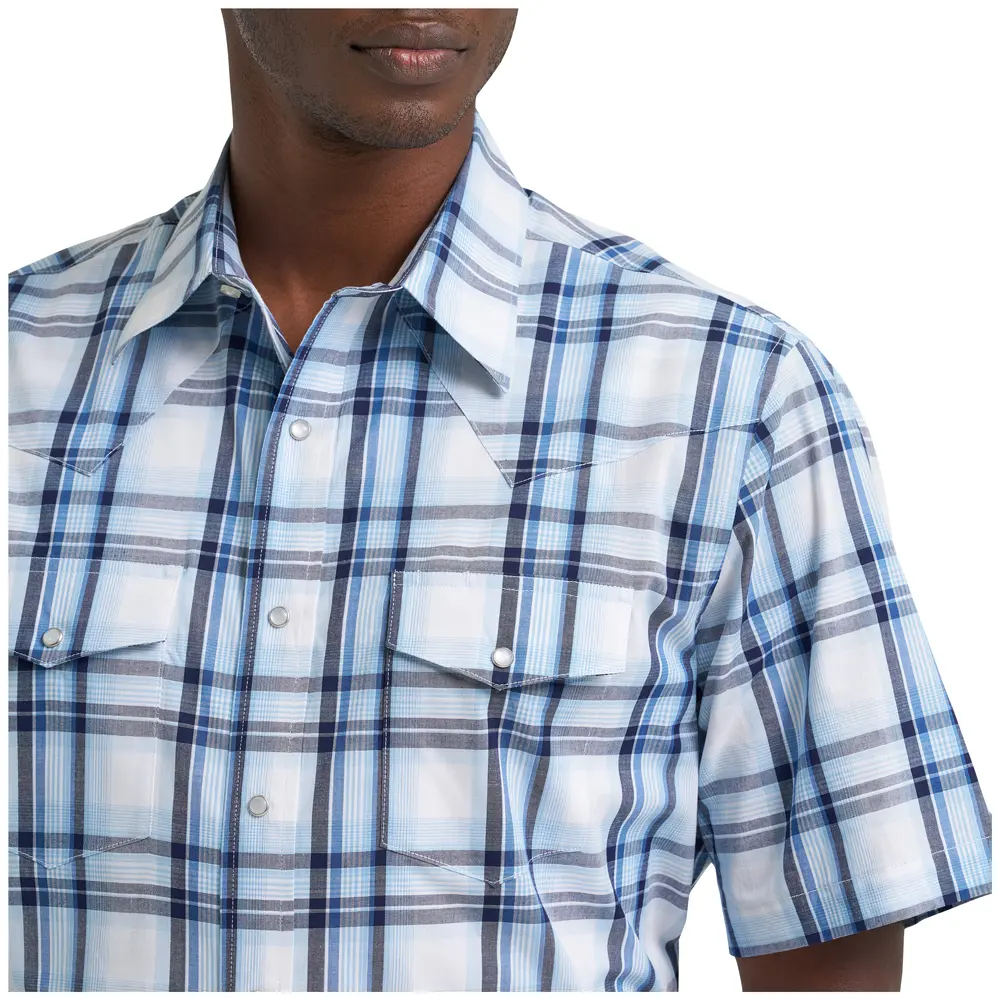 Wrangler Men's Wrinkle Resist Short Sleeve Snap Shirt in Blue Prep