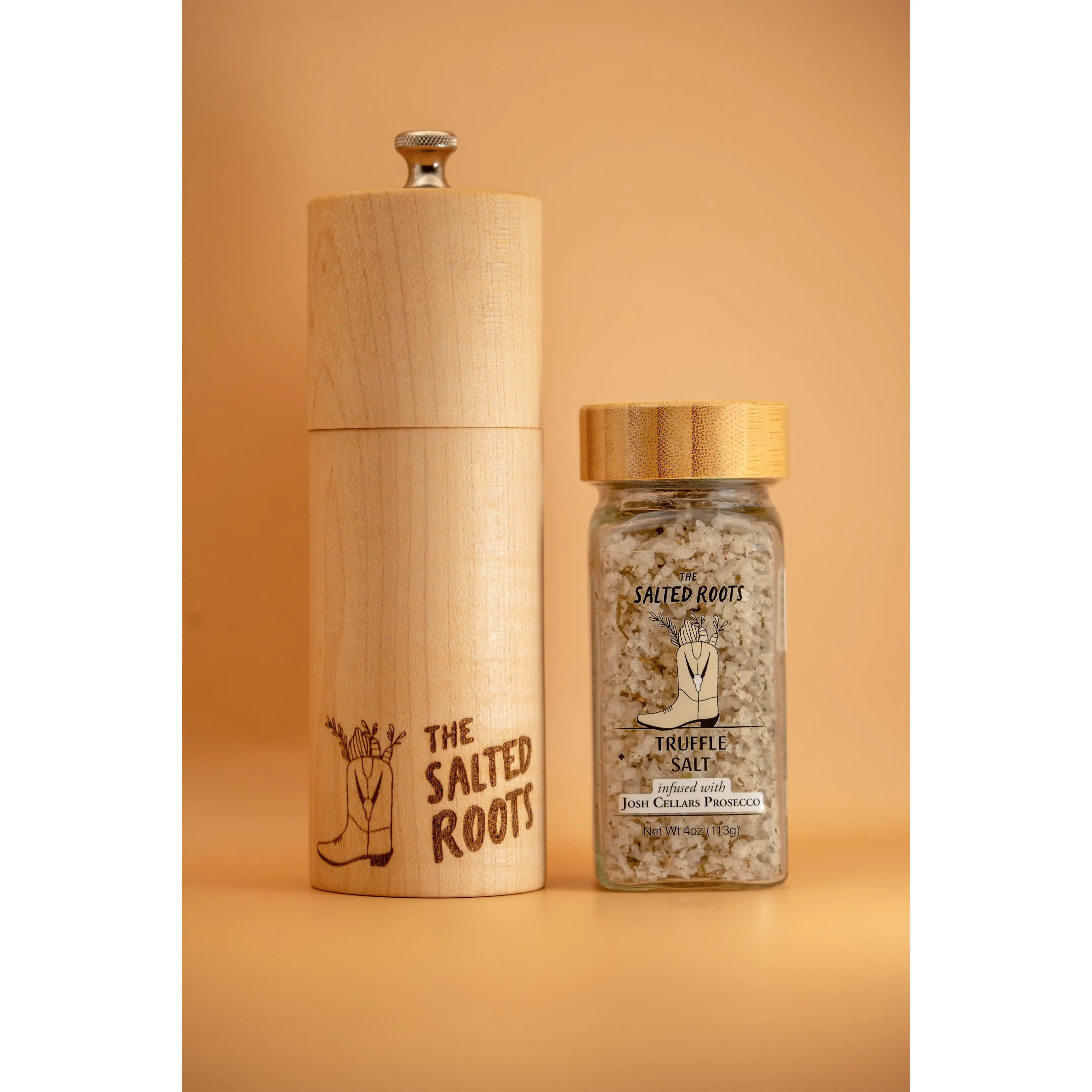 This earthy, elegant salt is like your favorite bottle of bubbly—refined, layered, and just a little indulgent. It’s the perfect touch for anyone who believes simple food can still feel luxurious. Paired with our custom-made wooden grinder, it turns everyday seasoning into a ritual.