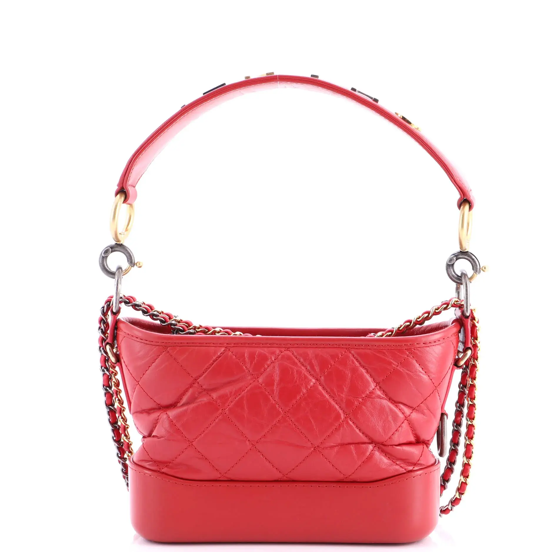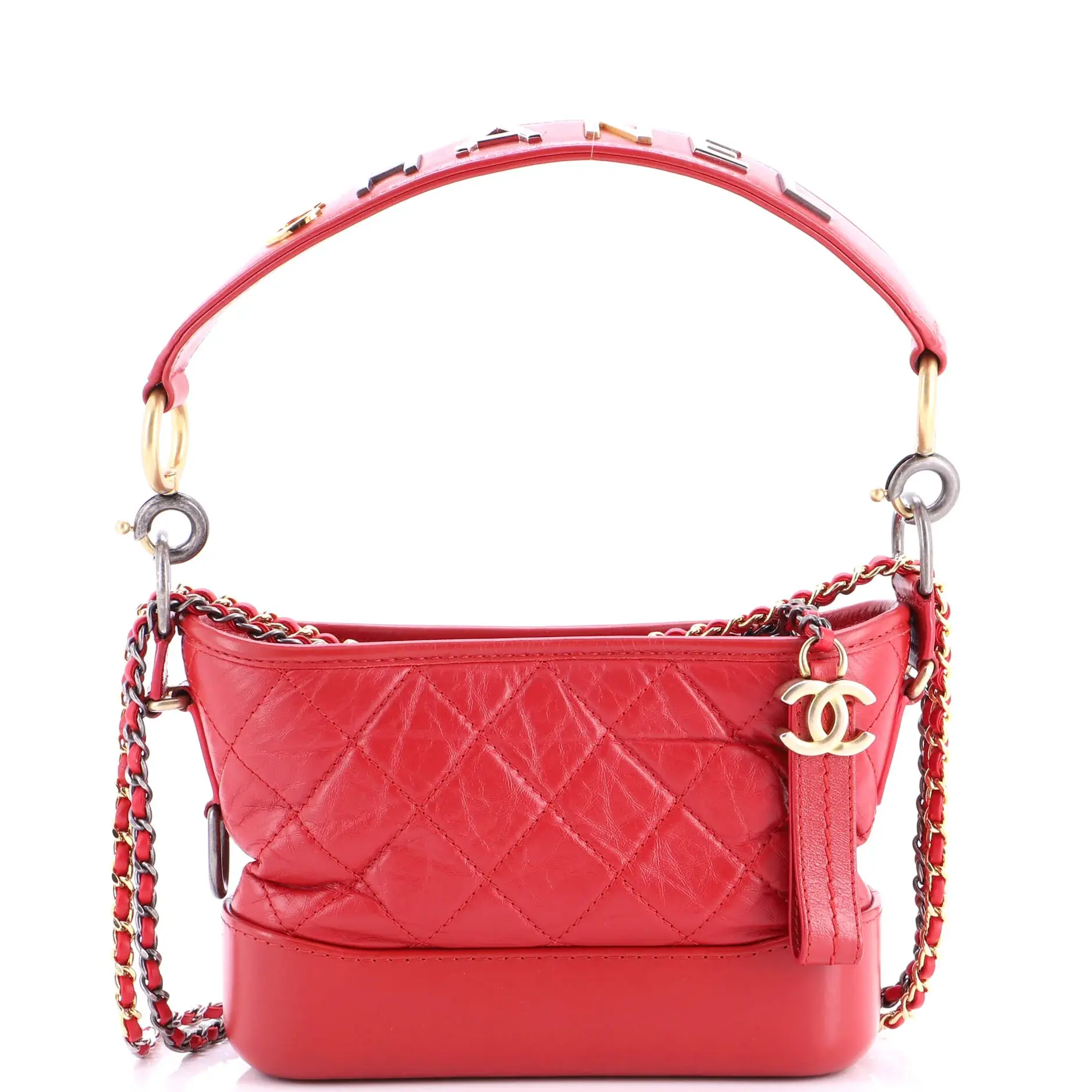 Pre-owned CHANEL Leather Shoulder Bags Gabrielle Hobo with Logo Handle Quilted Aged Calfskin Small by Rebag