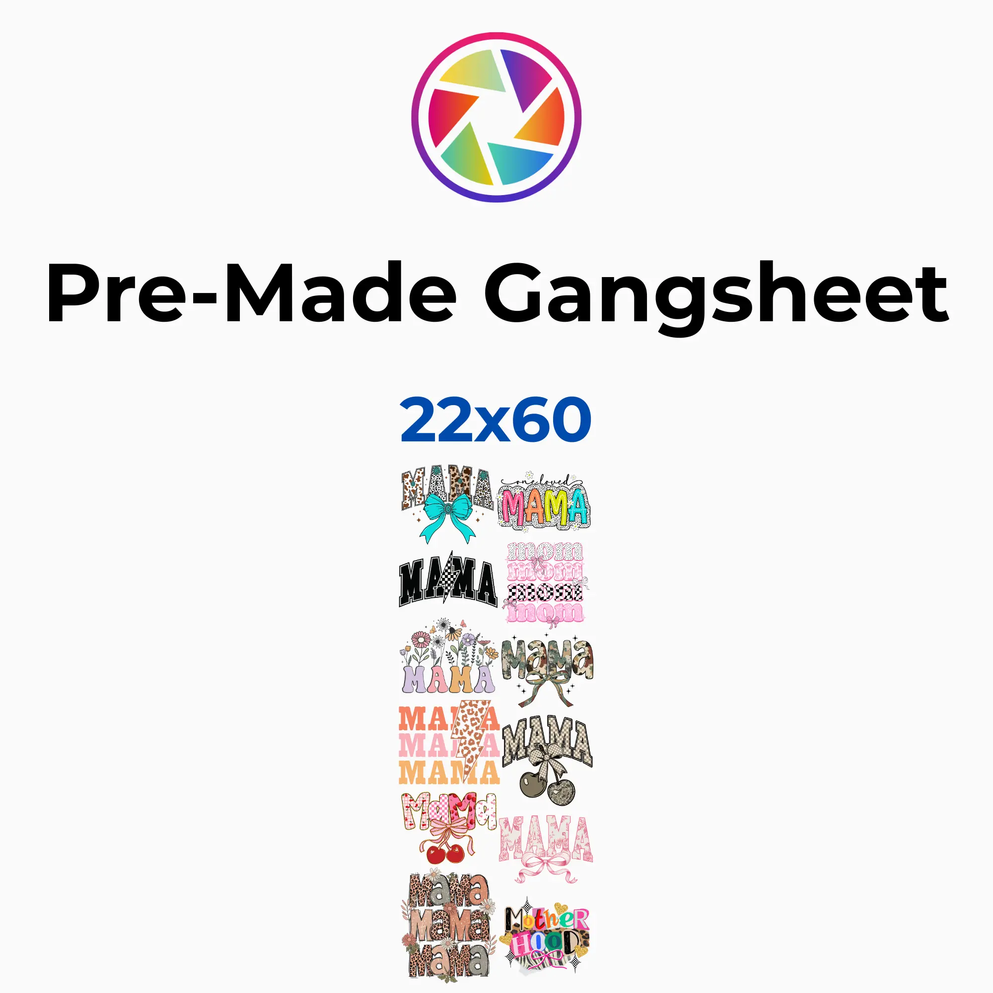 Our Mama Vibes 22x60 Pre-Made Gang Sheet is perfect for creating trendy, high-demand mom apparel your customers will love — now in our largest, highest-value format.
