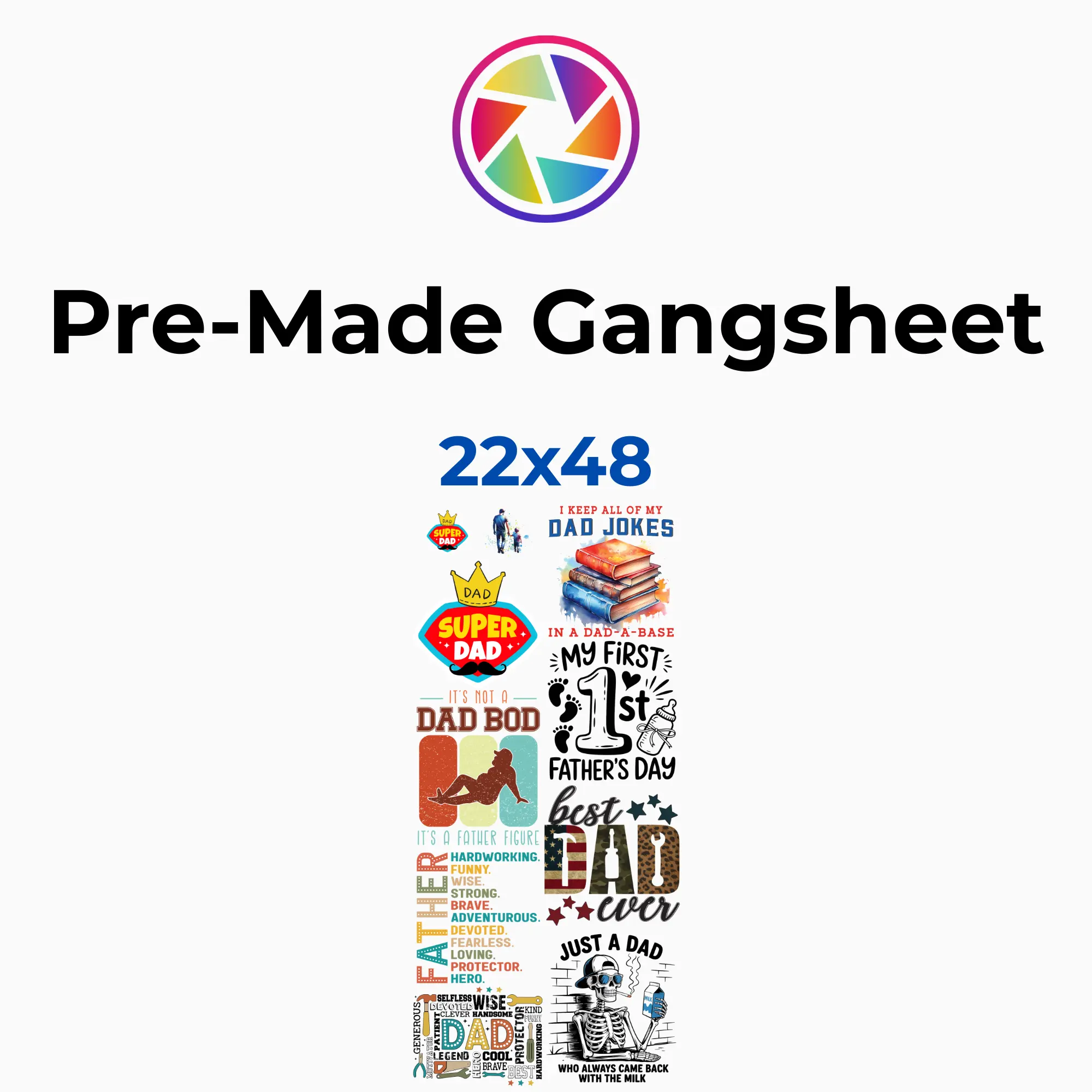 This oversized sheet features multiple dad-inspired designs with bold, fun, and relatable graphics — perfect for celebrating dads, grandpas, and father figures. Everything is laid out and ready to press so you can maximize your prints and profits with ease.