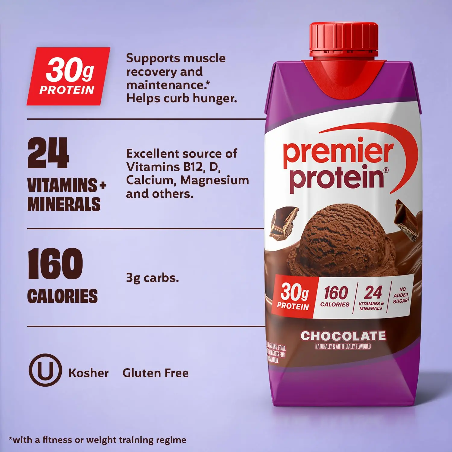 Premier Protein Shake Chocolate 30g Protein No Added Sugar 24 Vitamins Minerals 11 fl oz 15 Pack Healthier Snack - Flavor