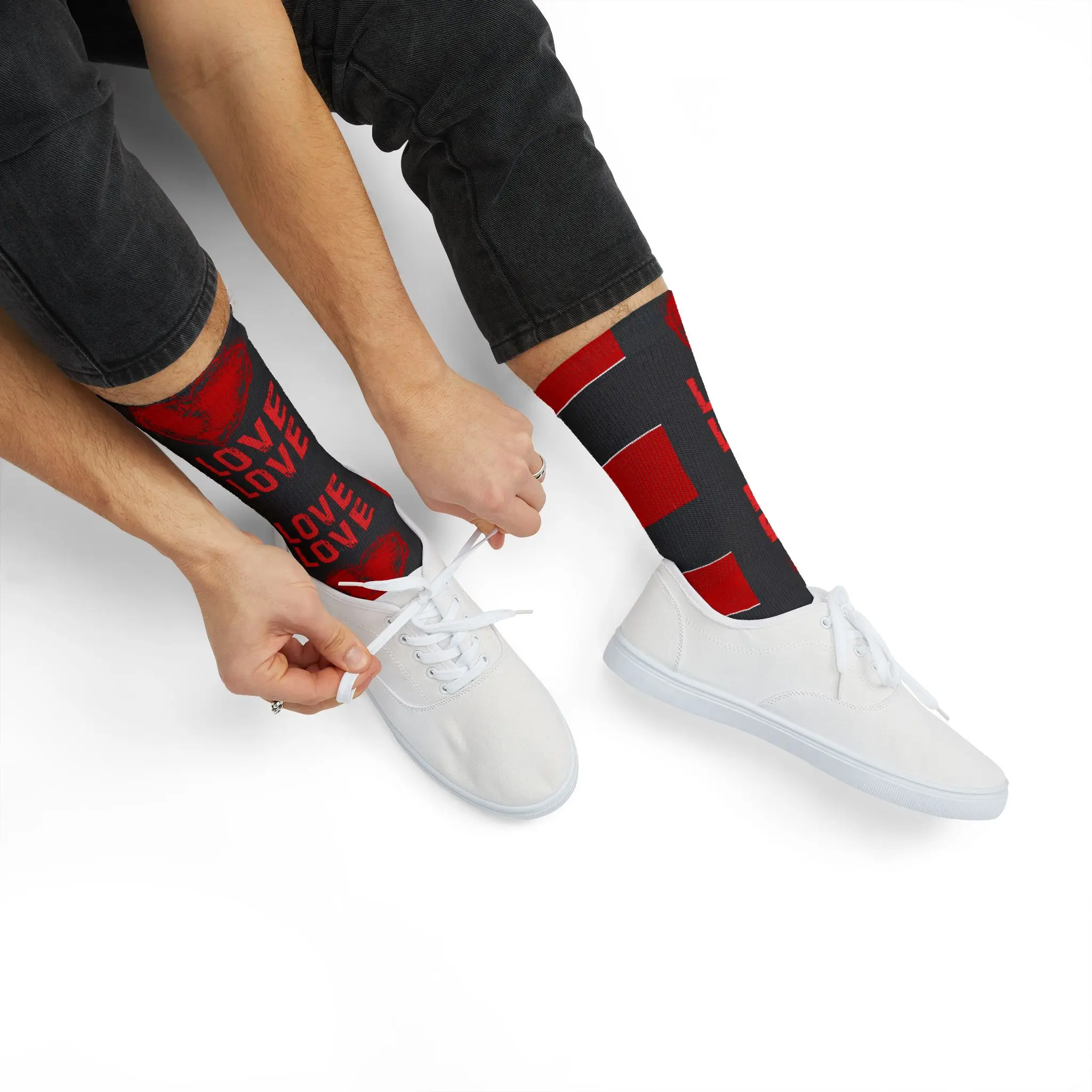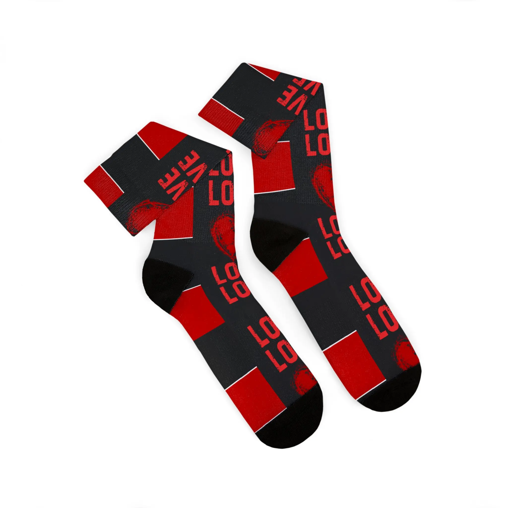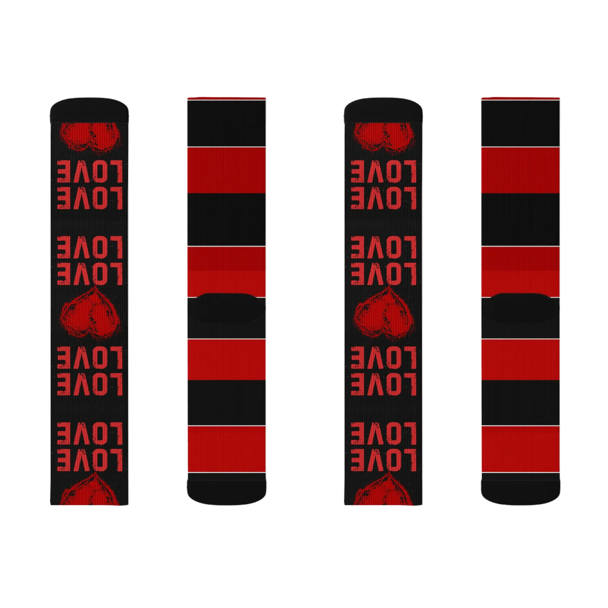 LOVE Heart Pattern Socks | Sublimation Socks, Red Black Stripe