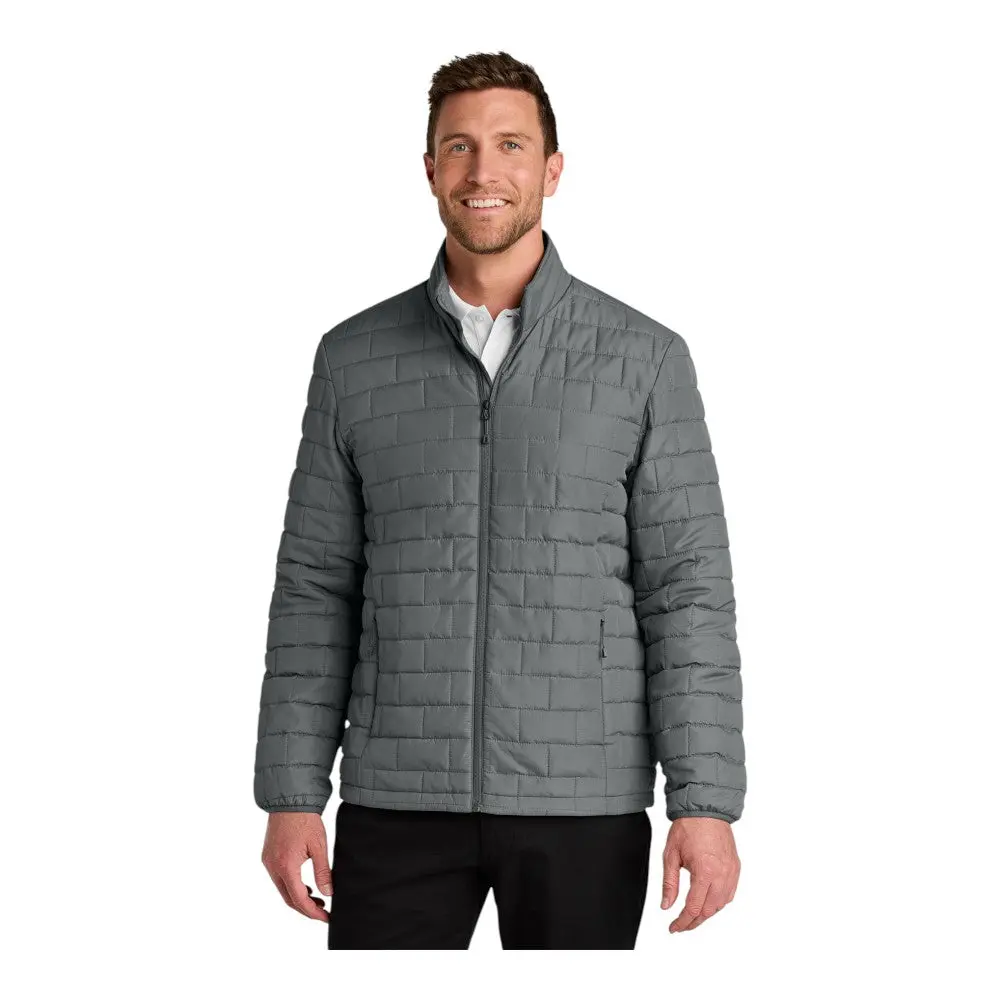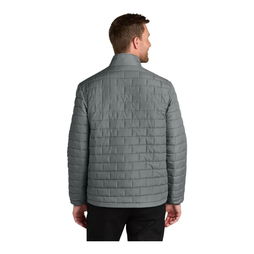 Combining modern style with eco-conscious materials, this jacket features a unique brick pattern and reliable water resistance. The recycled ripstop shell and insulation provide lightweight warmth, while thoughtful features make it perfect for outdoor wear or layering in changing weather.