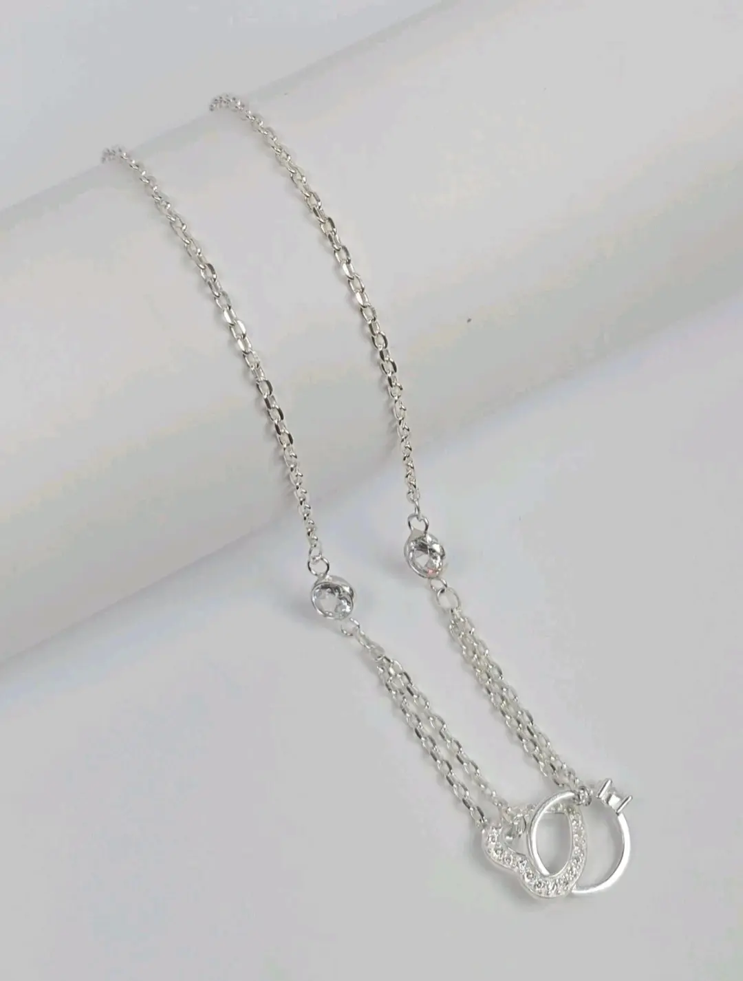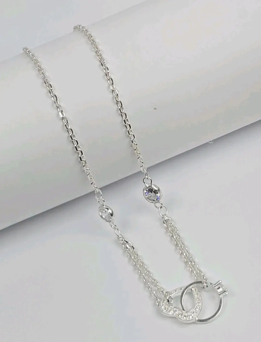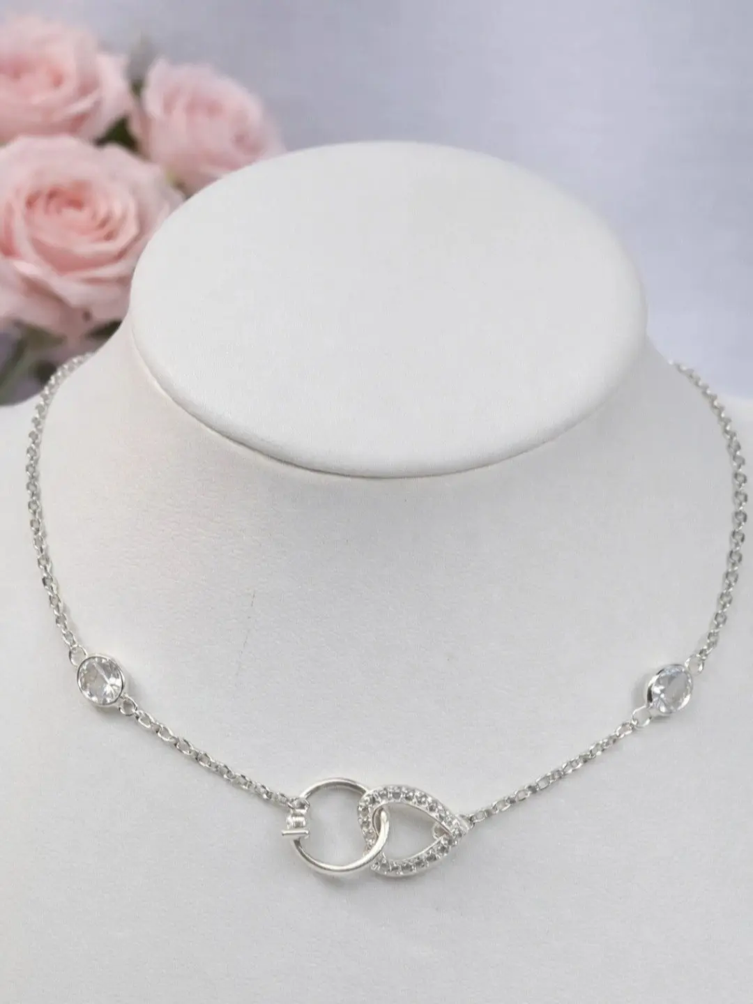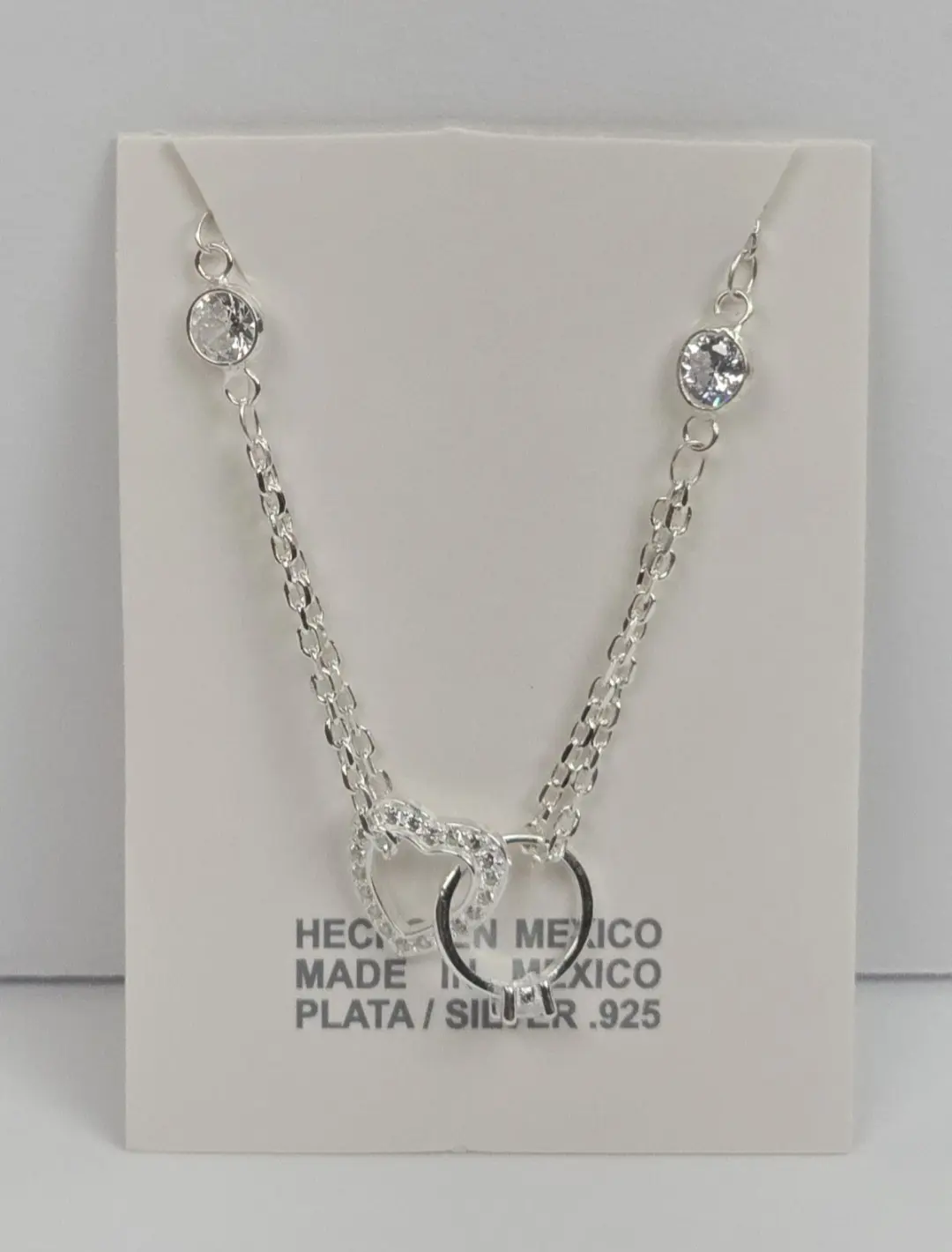 Collar Corazon y Anillo de Compromiso Entrelazados CZ Plata 925 - Ajustable 40cm - 45cm