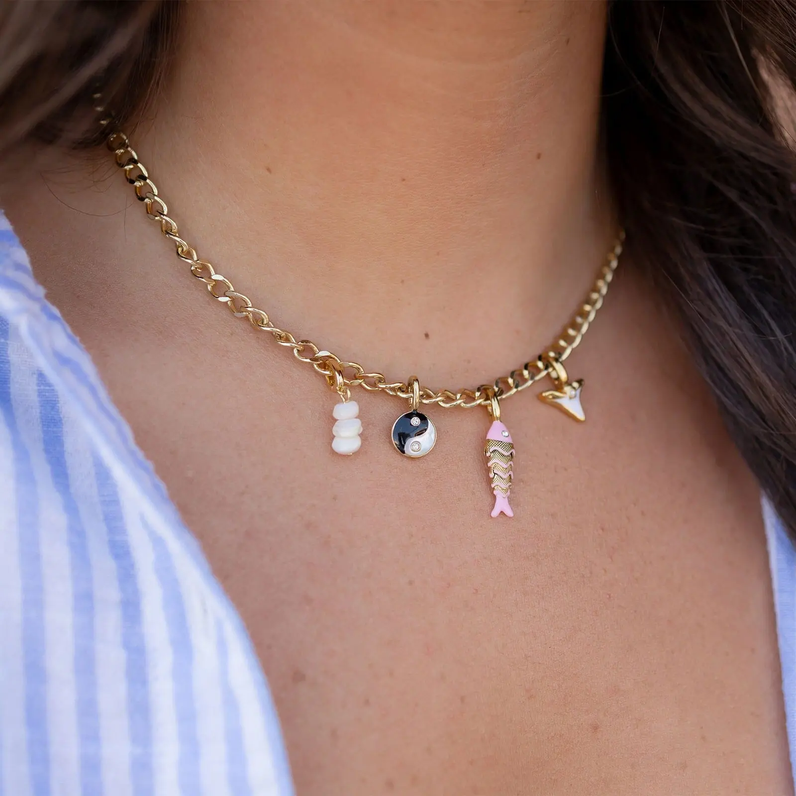 An easy way to elevate your charm stack. The Harper Gemstone Chip Charm features smooth gemstone chips stacked for a soft, organic look with subtle shine. Designed to clip onto your favorite Harper necklace or bracelet, it’s lightweight, versatile, and perfect for mixing into your everyday layers.