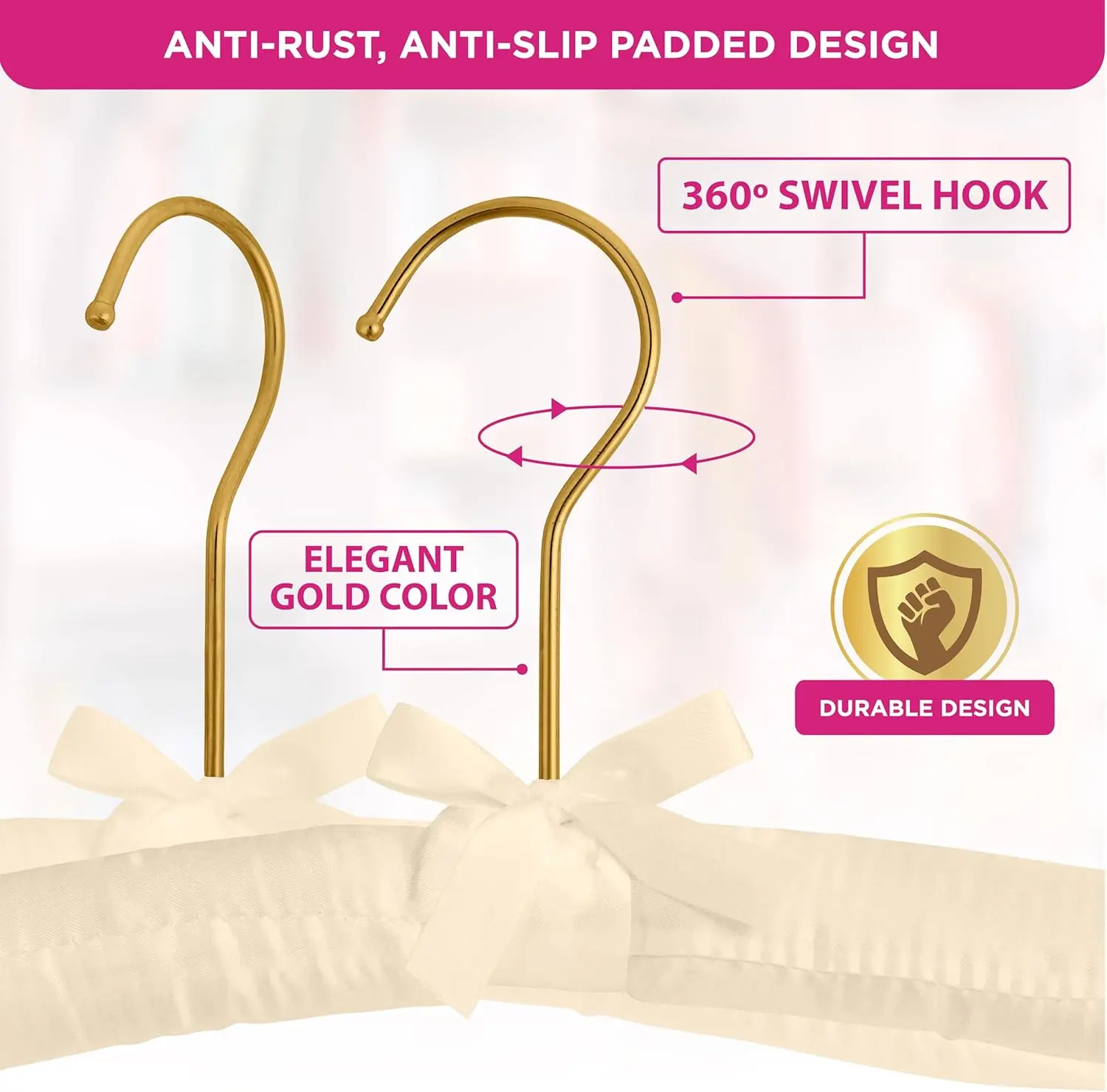 Premium Padded Hangers for Women’s Clothing - Set of 12 Non-Slip Fabric Hangers for Sweaters, Dresses, Coats, Wedding & Bride Hanger, Ivory