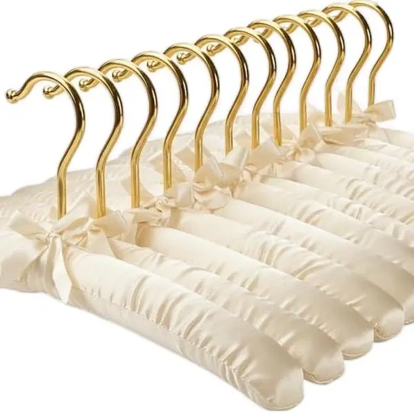 Elevate your wardrobe storage with this set of 12 non-slip fabric hangers. Perfect for sweaters, dresses, coats, and wedding attire. These ivory hangers are designed to keep your clothes in pristine condition. Ideal for brides and fashion enthusiasts alike.