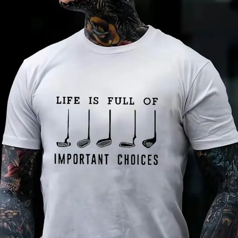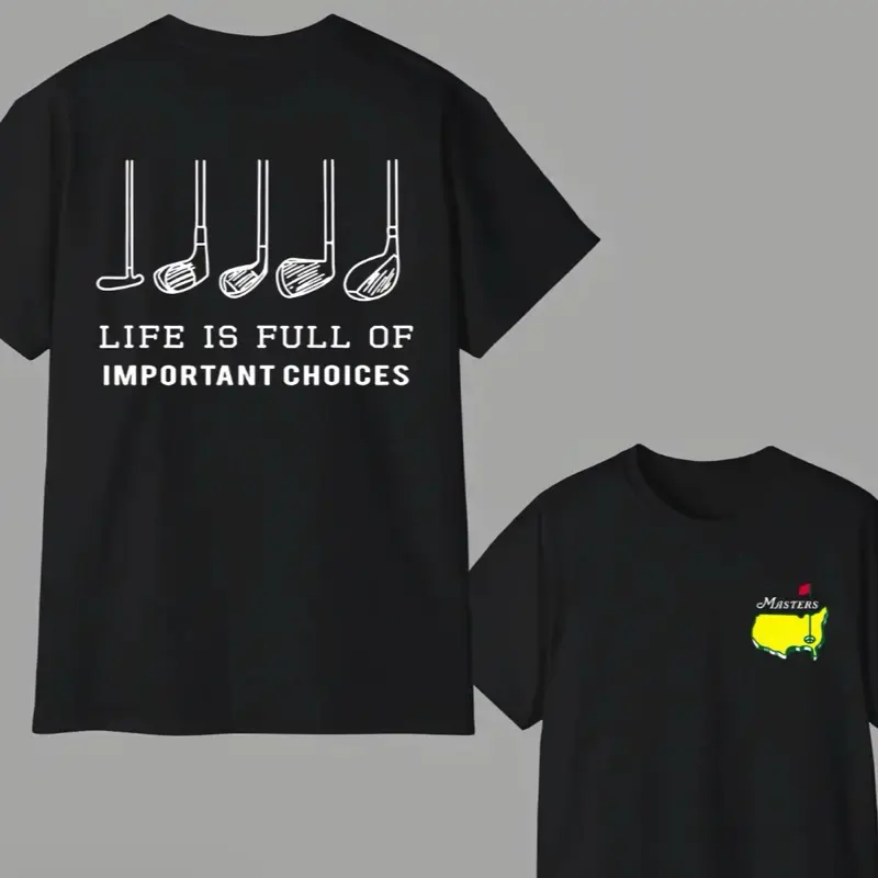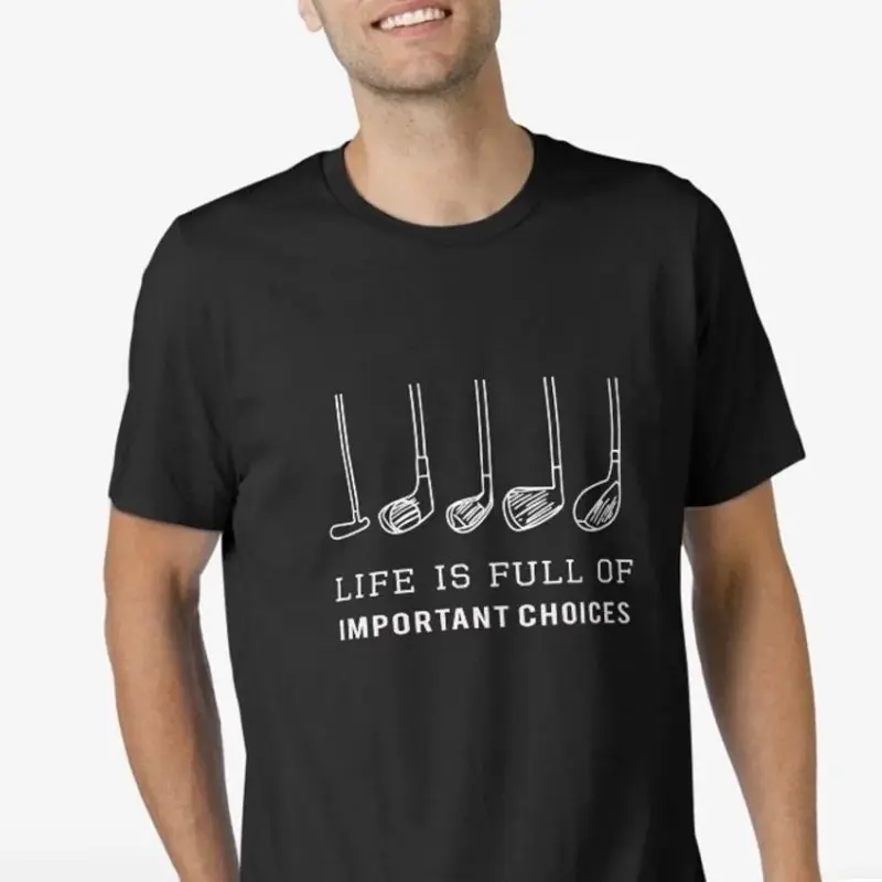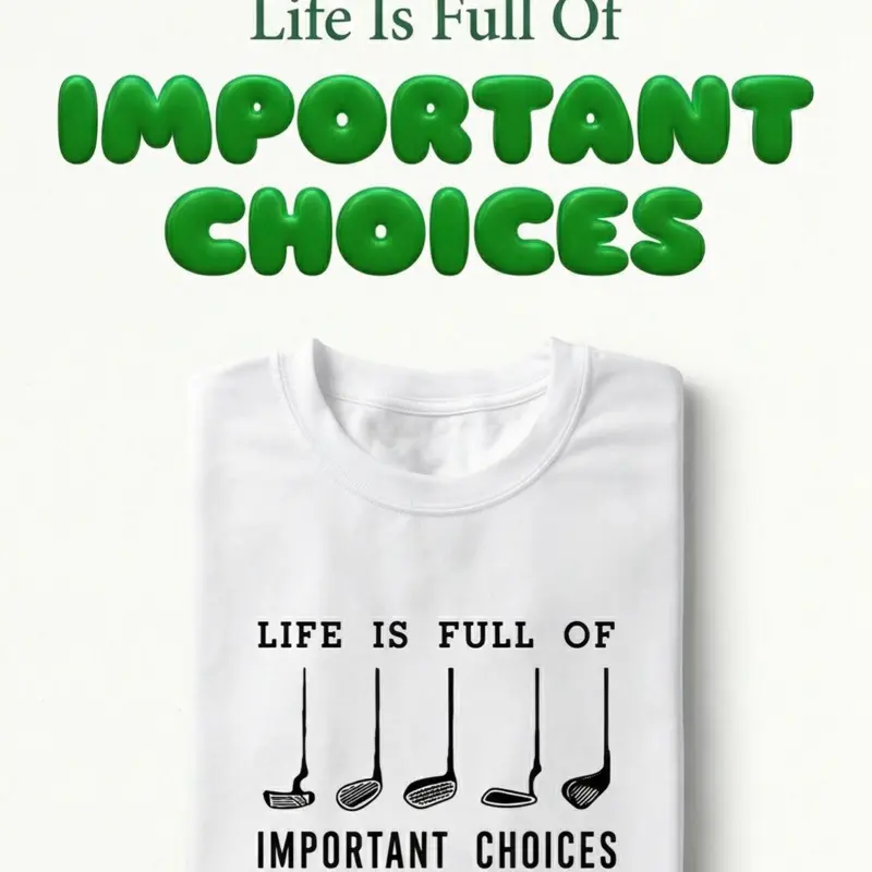 Celebrate your love for golf and good humor with this bold, print-ready design featuring five classic golf clubs and the phrase “LIFE IS FULL OF IMPORTANT CHOICES.” Because let’s face it, choosing between a birdie or a bogey is basically life or death on the course.