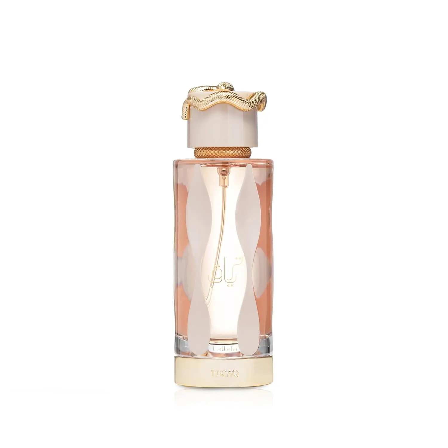 Teriaq EDP 100ml by Lattafa is a premium, modern unisex fragrance designed for evening wear and cooler seasons, offering a rich gourmand leather profile with a balanced and structured composition. This gourmand perfume opens with a blend of caramel, bitter almond, apricot, and pink pepper, delivering a sweet yet slightly spiced introduction with a soft fruity nuance.