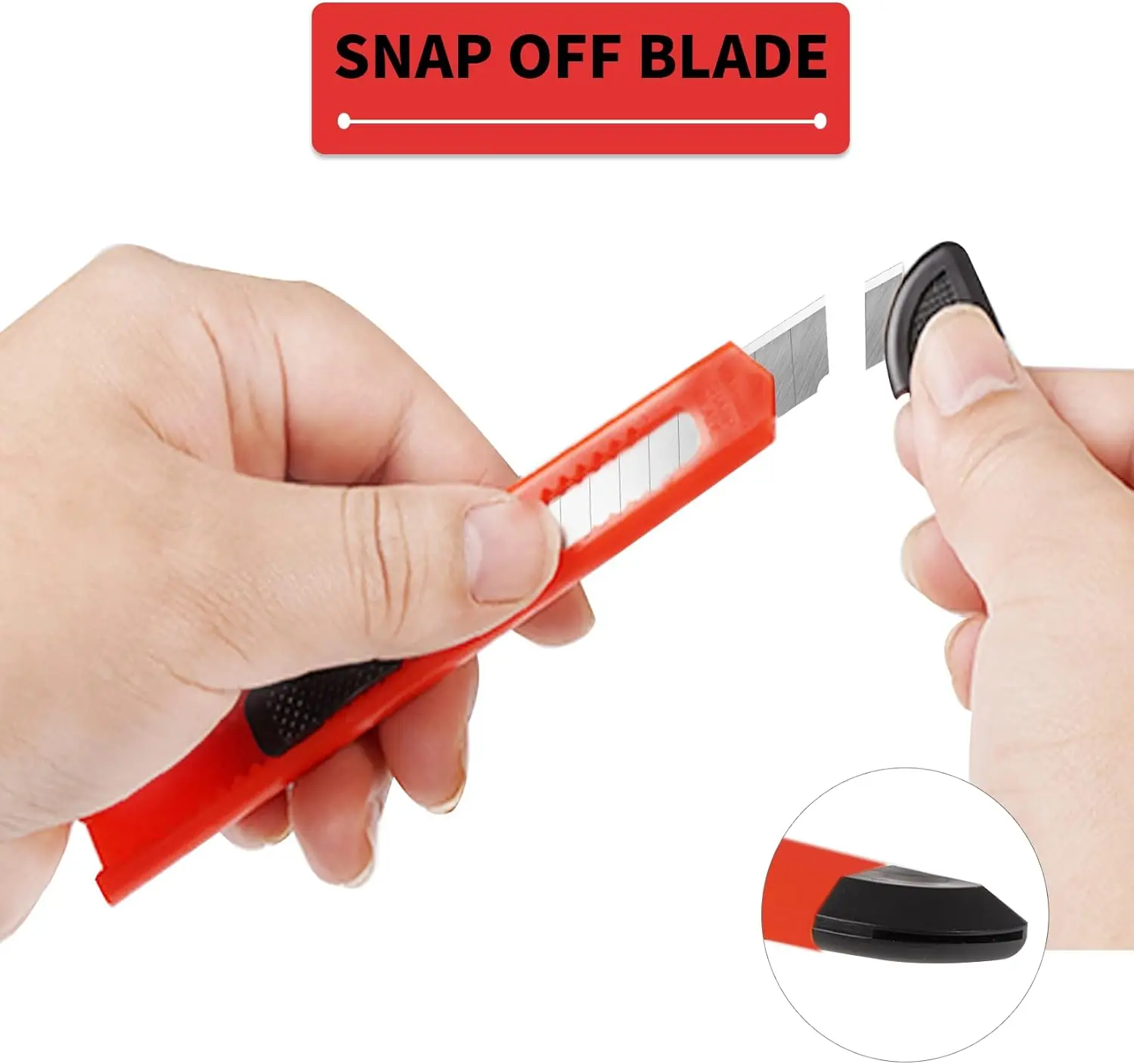 ·Each utility knife blade can be broken 12 times. When the tip of the blade wears out, you can break 1section, giving you a sharper cutting experience. Safety tips: Be careful when snap off the blade!