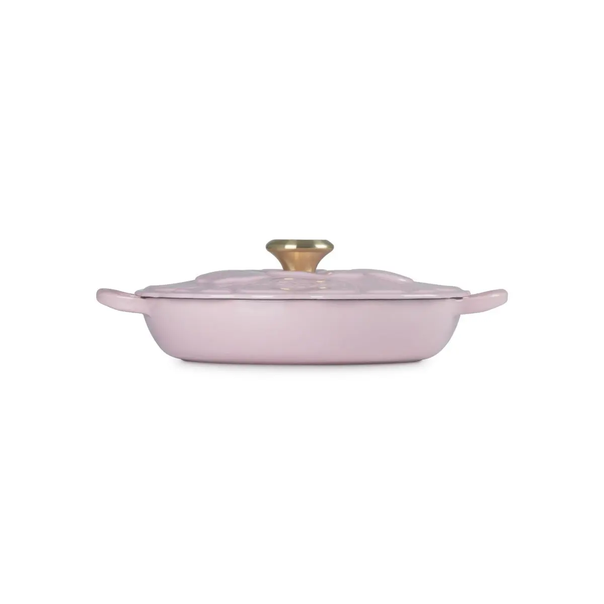 Cultivate style in your kitchen when preparing meals with the Le Creuset Signature 2.25 Qt. Petal Braiser! Boasting the most-loved features of your favorite cast iron cookware, this 2.25 quart braiser features a smooth interior finish that promotes caramelization and prevents sticking with a floral-inspired lid that locks in moisture and flavor. Braised short ribs, savory carnitas, succulent rouladen, or eggplant lamb stew — no matter what you're craving, this braiser is a quality piece of cookware that you can take directly from the oven or stove to the tabletop for serving. It's compatible with all stovetops and can even be cleaned in the dishwasher for ultimate convenience. Finished in a sleek Le Creuset Chiffon Pink finish with a light gold knob, the Petal Braiser will complement other pieces in Le Creuset's Flower and Petal Collections and add a touch of Springtime to every meal.
