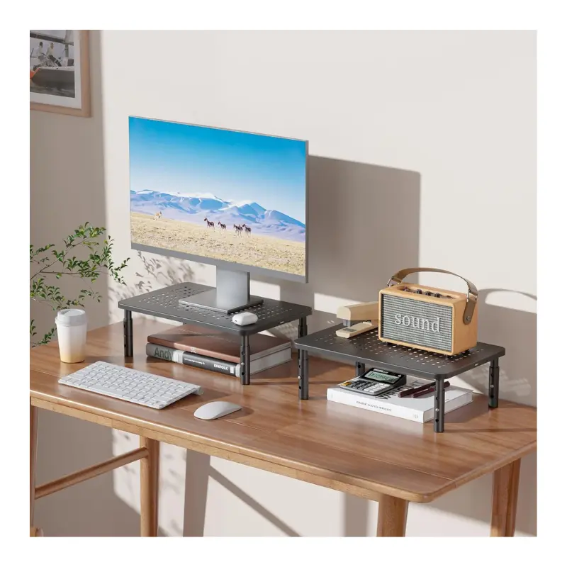 This monitor stand simplifies your workspace. The under-desk storage keeps essentials within reach. Ideal for those seeking a tidy, functional desk setup. No additional features are included. Focus on the practicality and organization it provides.