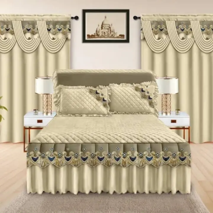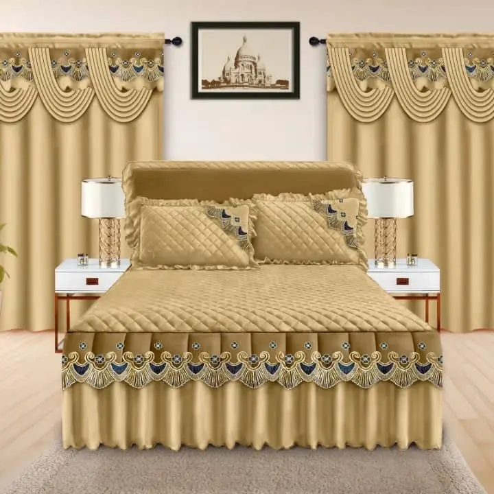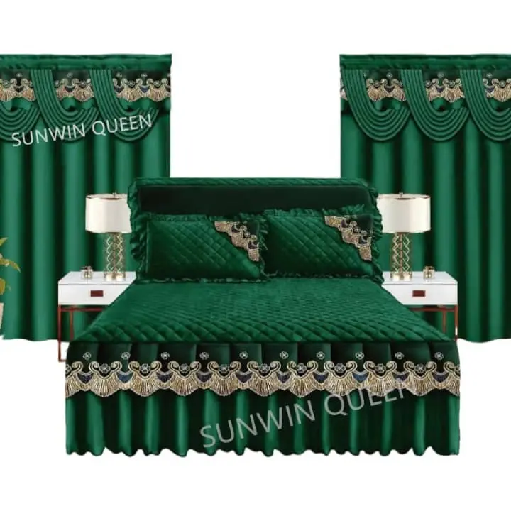 Sunwin Queen Premium Bed Set – Soft Comfortable Mattress & Blanket in Elegant Green with Gold Embroidery