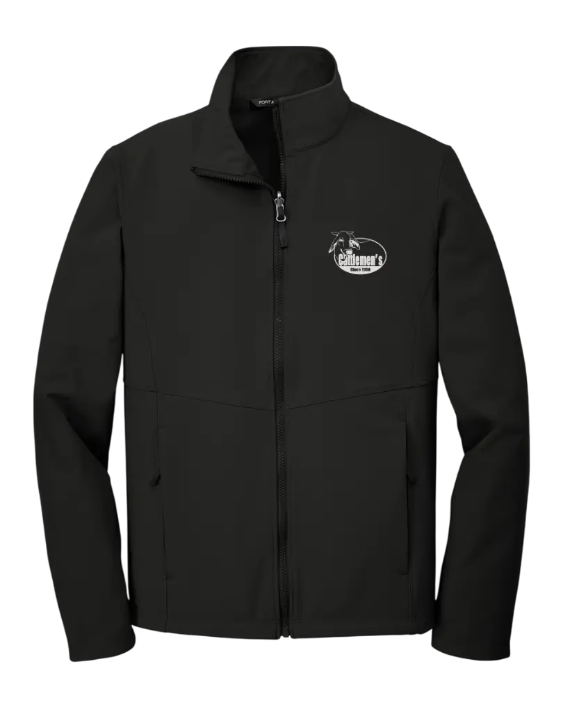 With a subtle mini ripstop texture, this stretch Soft Shell Jacket has double-needle stitching throughout and sleek design lines. The water-resistant film resists wind and rain for weather protection.