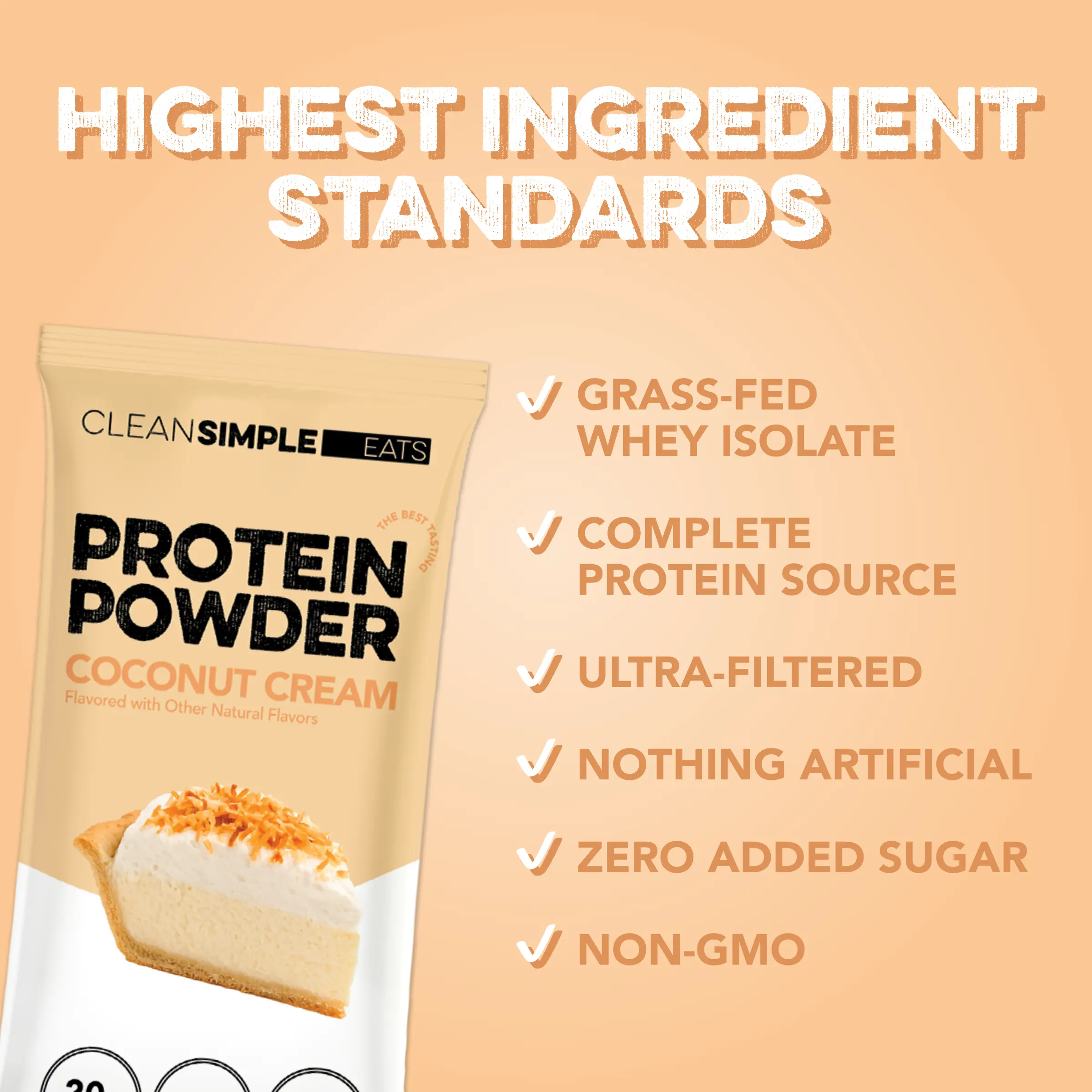 Creamy and dreamy Coconut Cream Protein Powder is packed with 20g of grass-fed whey protein isolate in every serving. Undeniably clean, 100% delicious, and made to enjoy every day. Increase your protein intake, fuel your day, and feel your best.