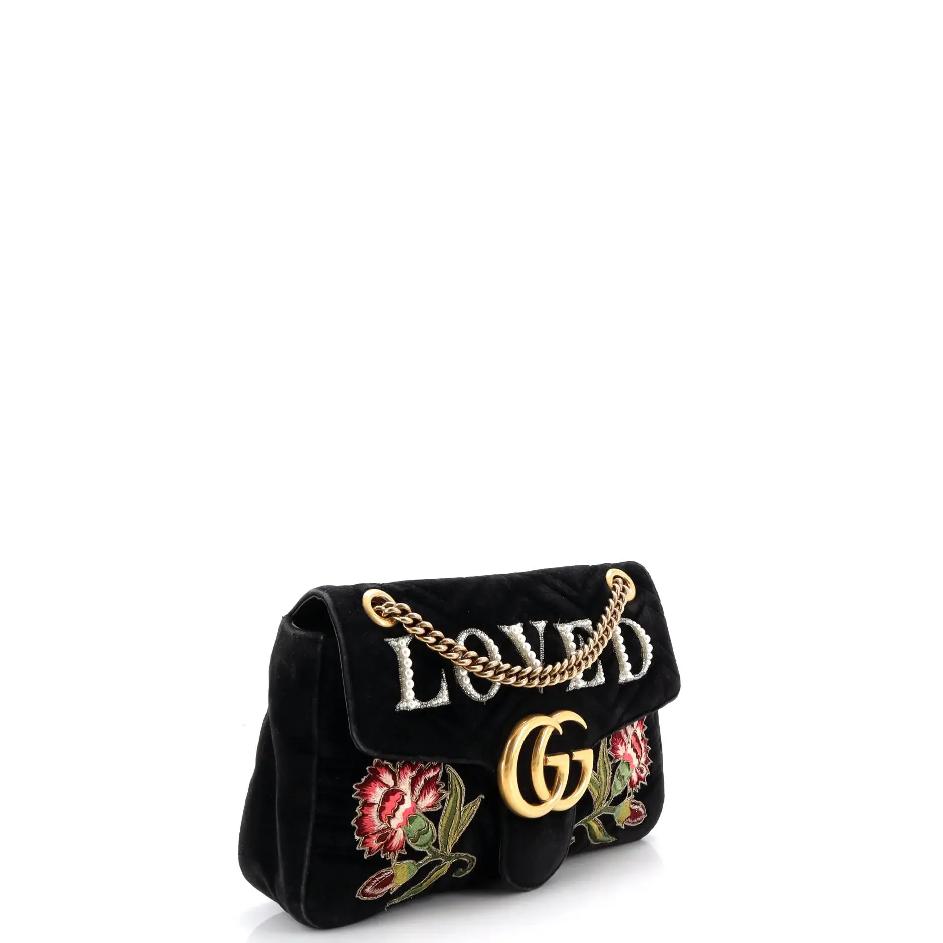 Model: GG Marmont Flap Bag Embroidered Matelasse Velvet Medium