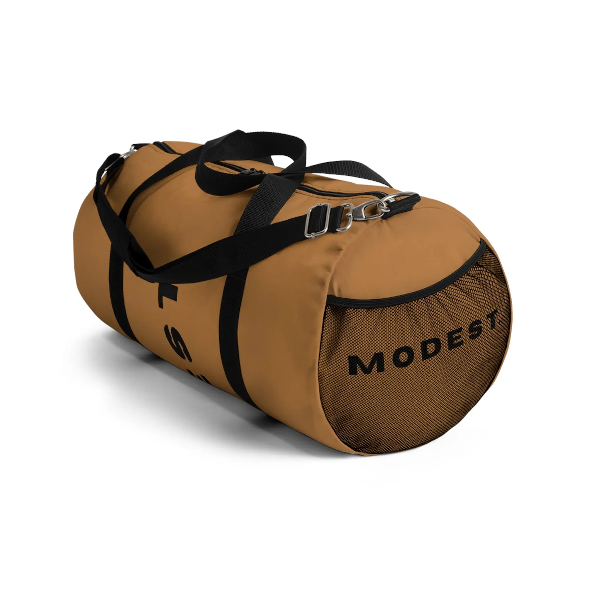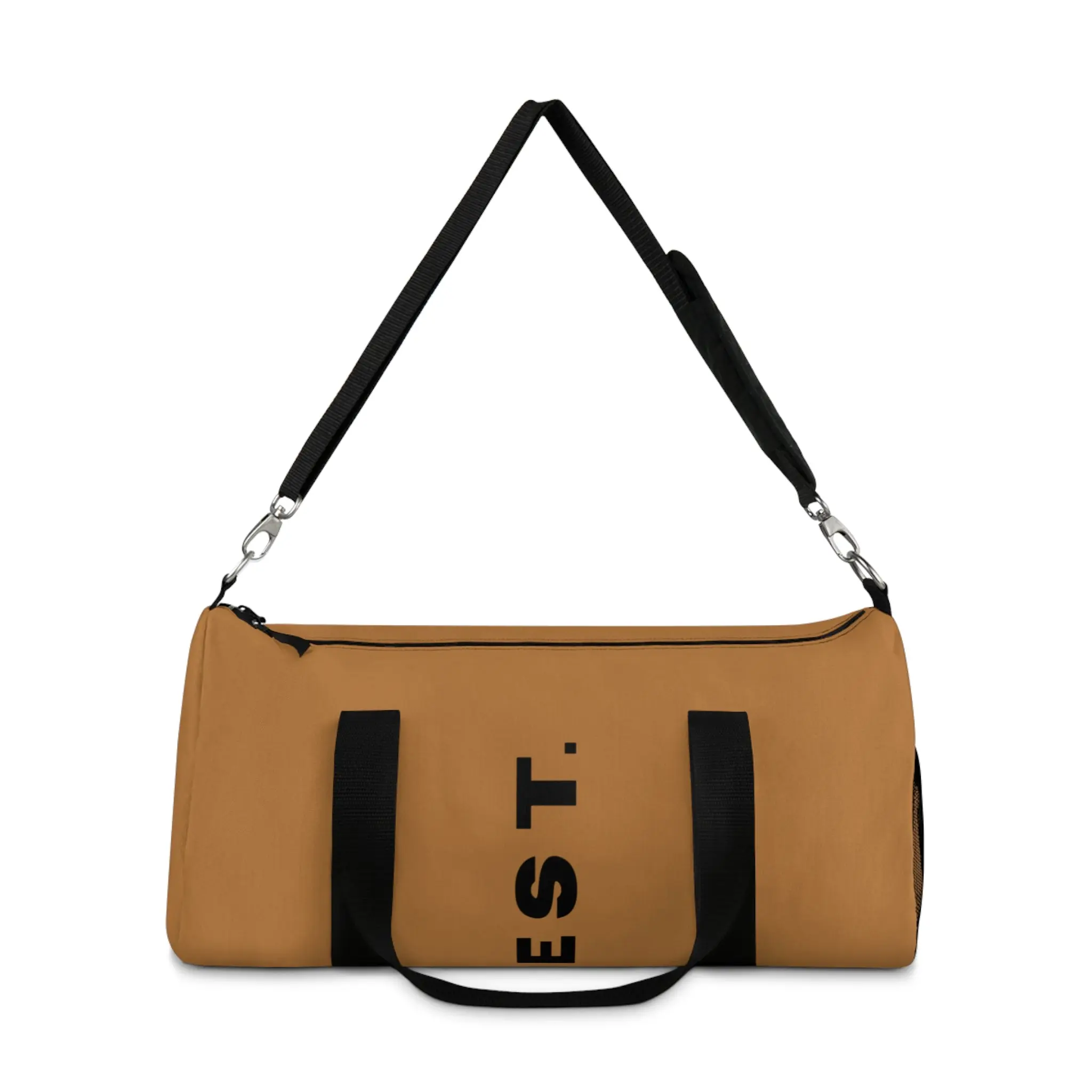 Minimalist Brown Duffel Bag – Travel Gym Weekend Carryall with Bold Vertical Text