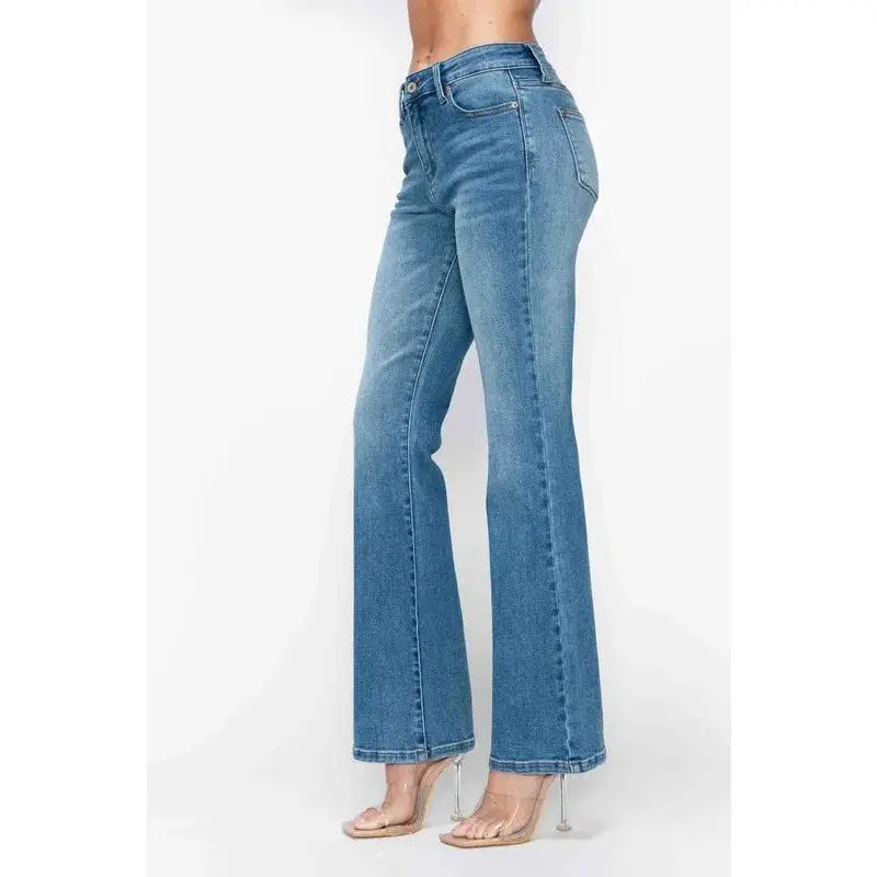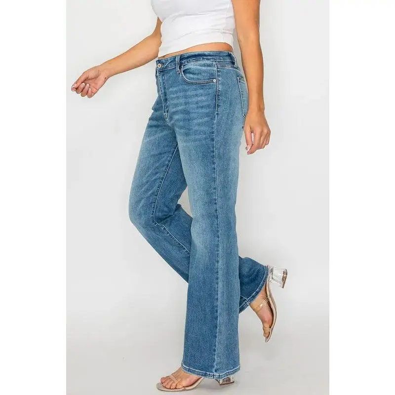 These bytos Full Size Cat's Whiskers Mid Rise Bootcut Jeans offer a classic denim look with a modern twist. The mid-rise waist provides a comfortable and flattering fit, while the bootcut leg opening adds a touch of style. The cat's whiskers detailing gives the jeans a vintage-inspired feel. Made from durable denim fabric, these jeans are designed to last. They are versatile enough to be dressed up or down, making them a great addition to any wardrobe. The jeans are available in a full size range to ensure a perfect fit for everyone. The material is a blend of cotton and elastane for comfort and stretch.