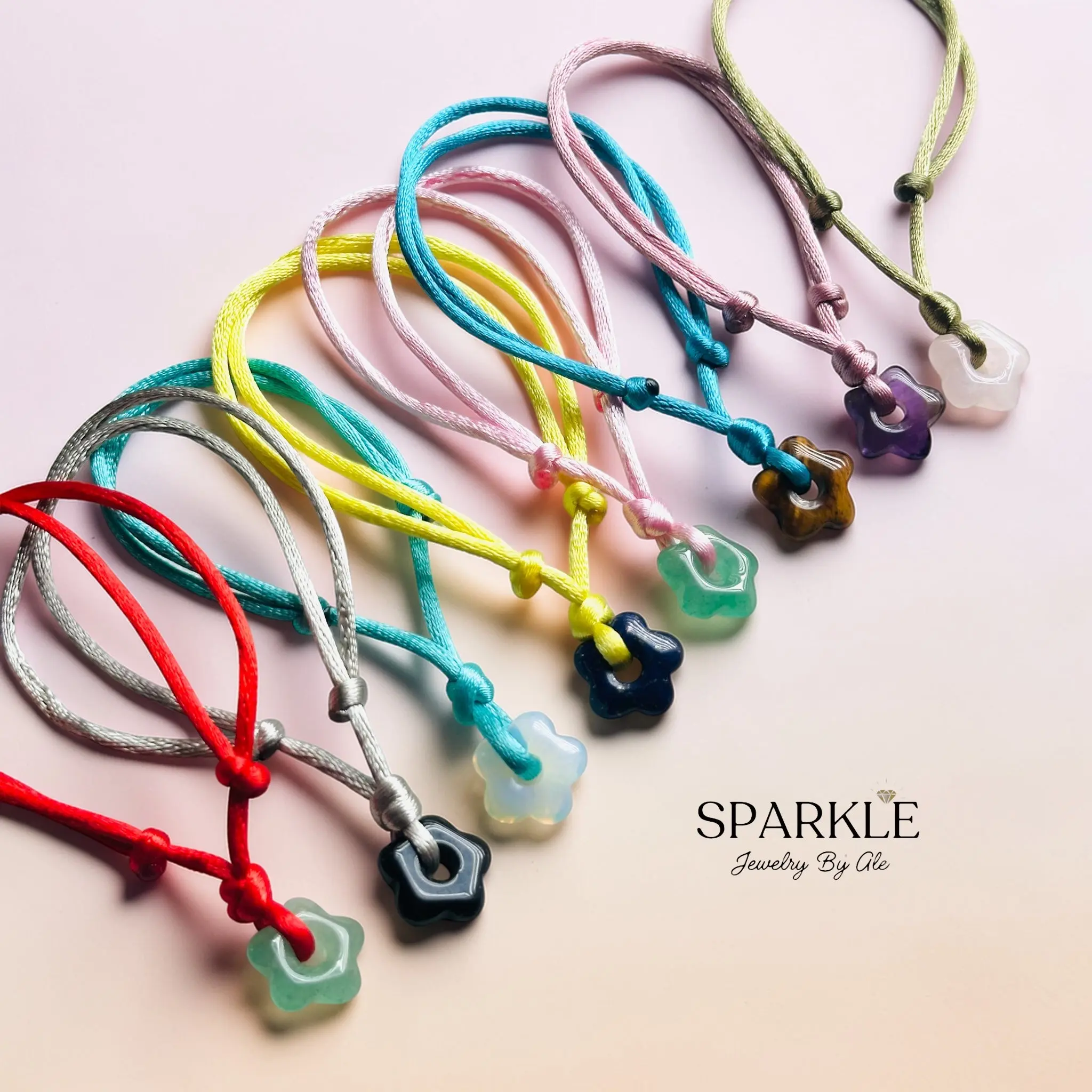 Delicate flower charm bracelets made with natural energy stones, each piece carries its own unique vibration. Designed to attract positivity, balance and good energy while adding a soft, colorful touch to your everyday look.