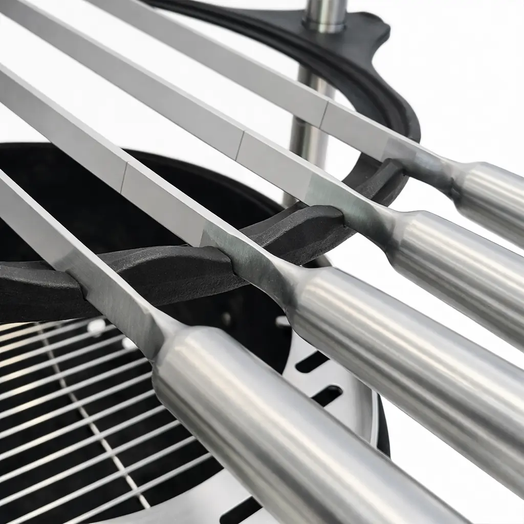 Clean, strong, and easy to handle, the skewers turn live-fire cooking into an interactive, shareable experience around the table.