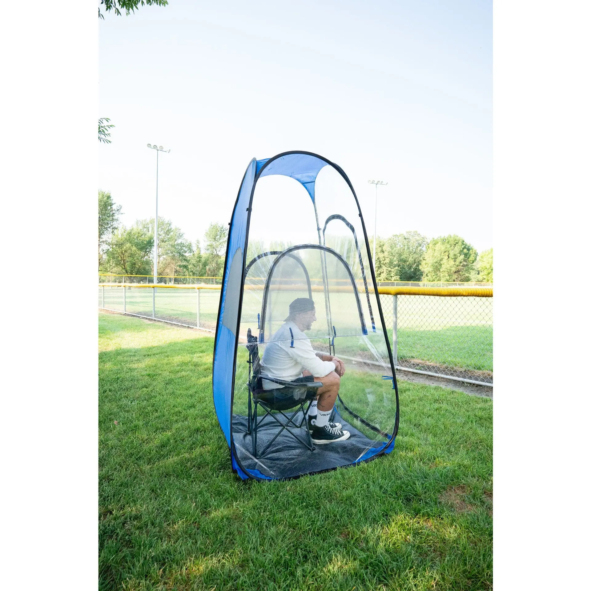 Stansport's Pop-Up Multi-Purpose Shelter is the perfect accessory for you next outdoor event. Great for outdoor sporting event such as soccer, baseball and football games! The large design will fit one adult with a chair comfortably. The transparent front door and side panels provide a wide range of view, and keep you fully enclosed when zipped shut. Features three zip down windows with mesh screens, and 8 tie down loops with stakes and guy lines for anchoring in place.