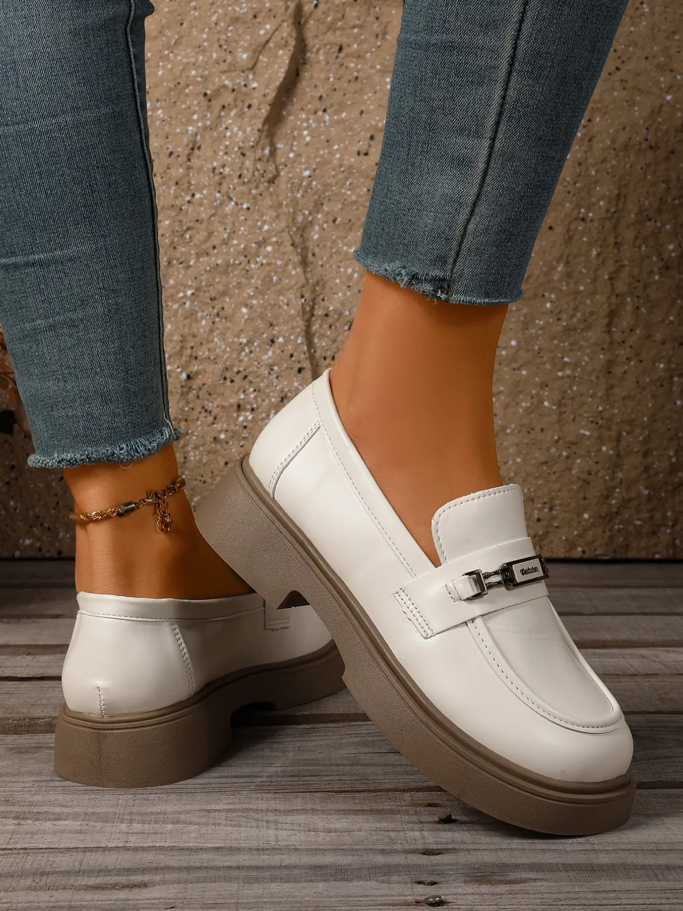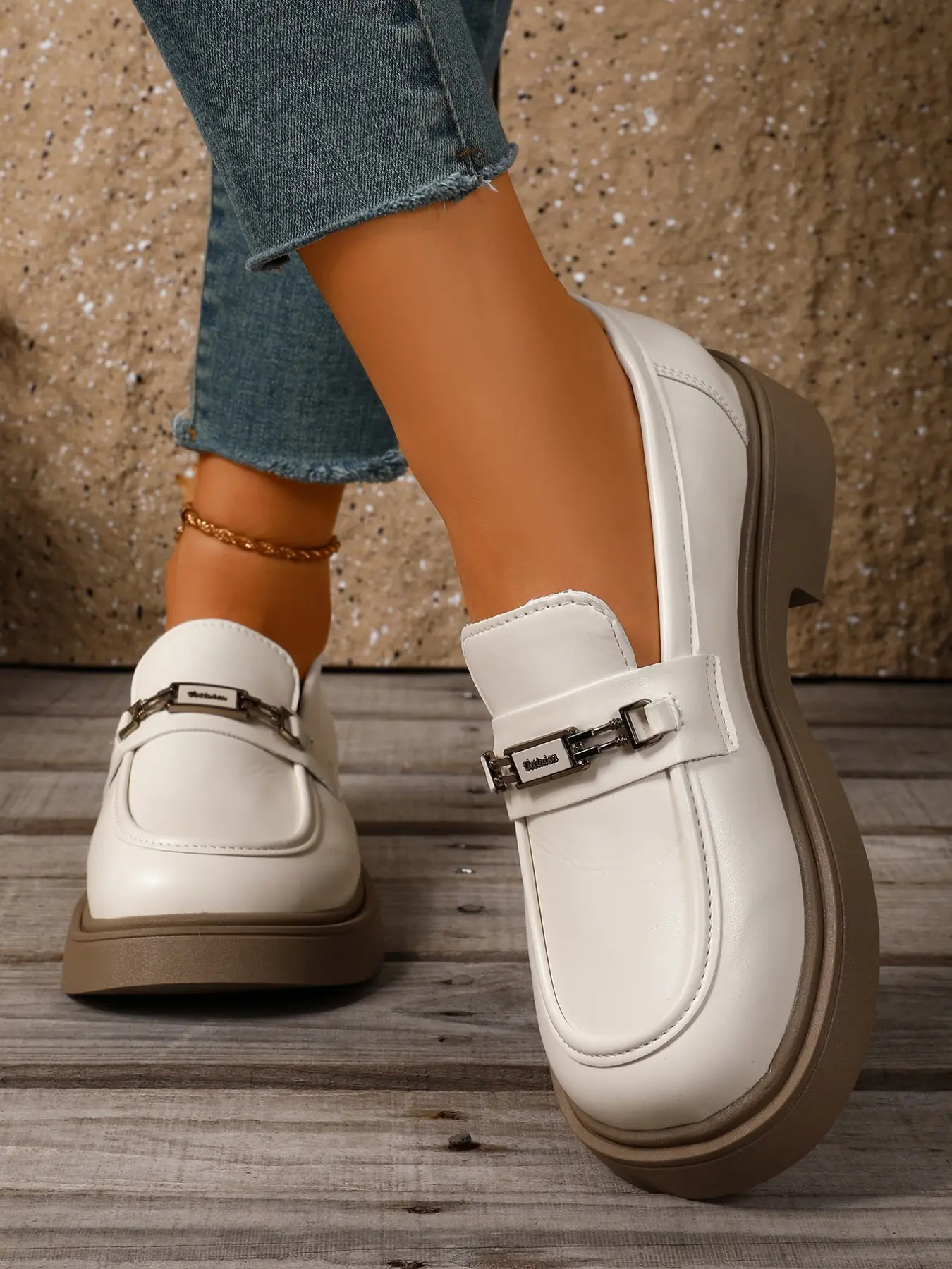 New Spring Fall Thick Sole Loafers Women, British Style Metal Buckle Platform Shoes, Height Boost Slim Fit Slip-On, Versatile Office Jk Uniform Shoes, Retro College Style