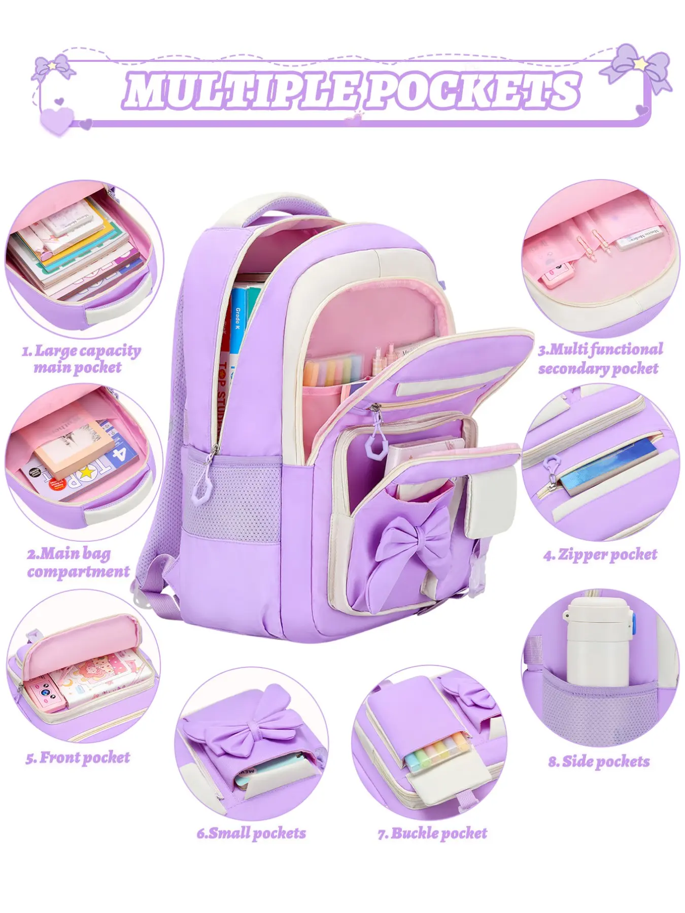 Butterfly Knot Women's Casual Backpack, Lightweight Large Capacity School Bag, Ideal for Back-To-School, Travel, and Daily Use