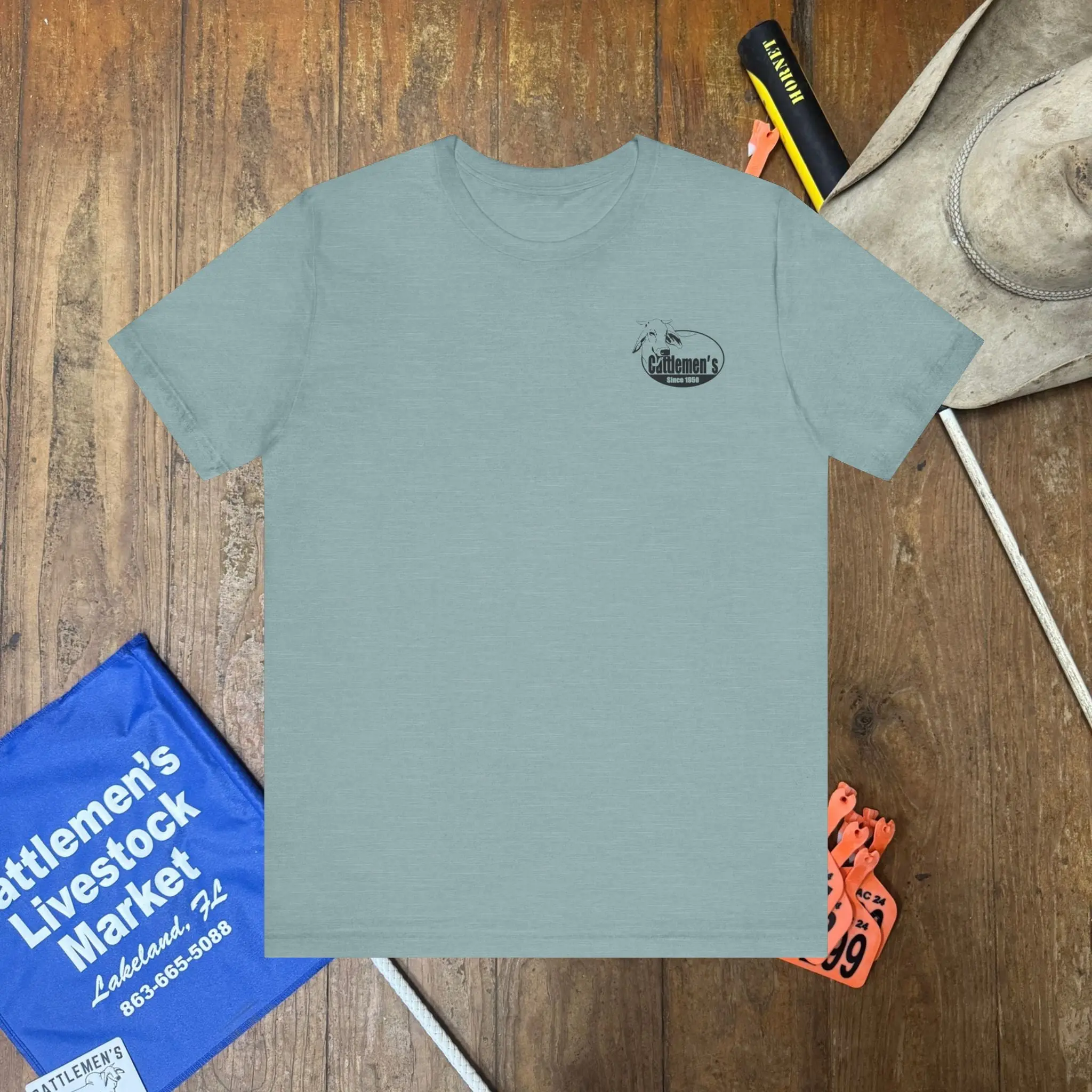 This Cattlemen’s Livestock Auction tee is built for the ones who rise with the sun and stay until the last gate’s shut. Featuring our bold logo front and center, it’s a tribute to the grit, tradition, and community behind every head sold at the Lakeland market. Soft, breathable, and ranch-ready—wear it to the barn, the auction, or out on the town.