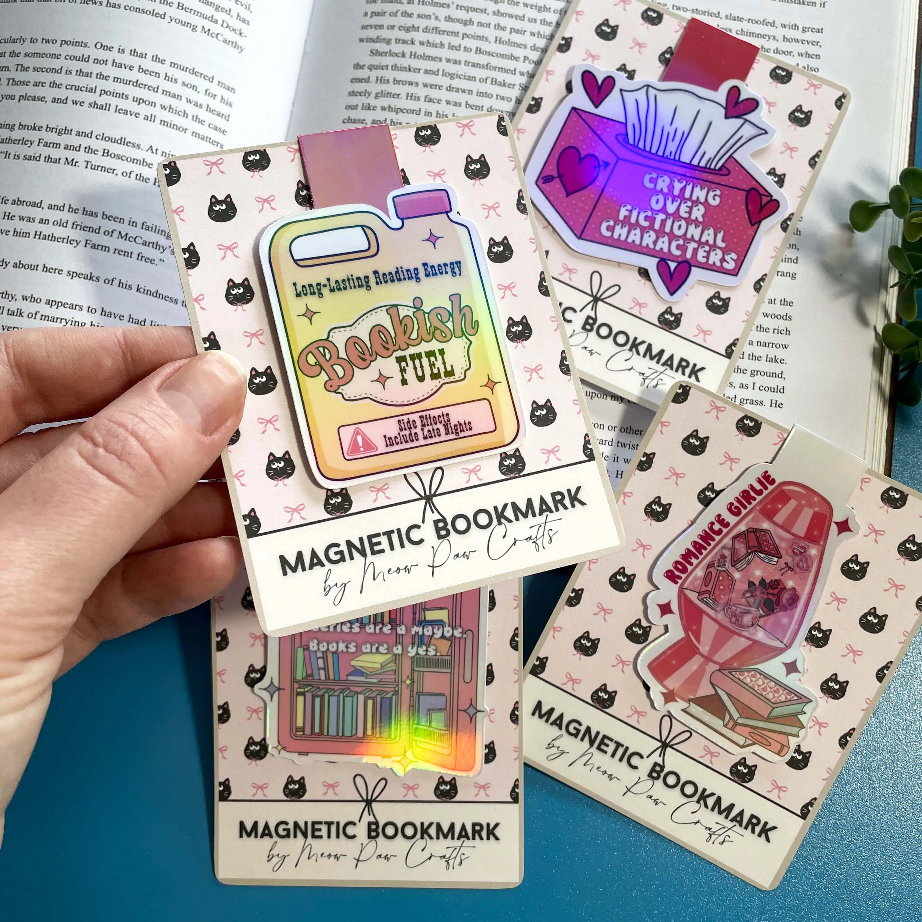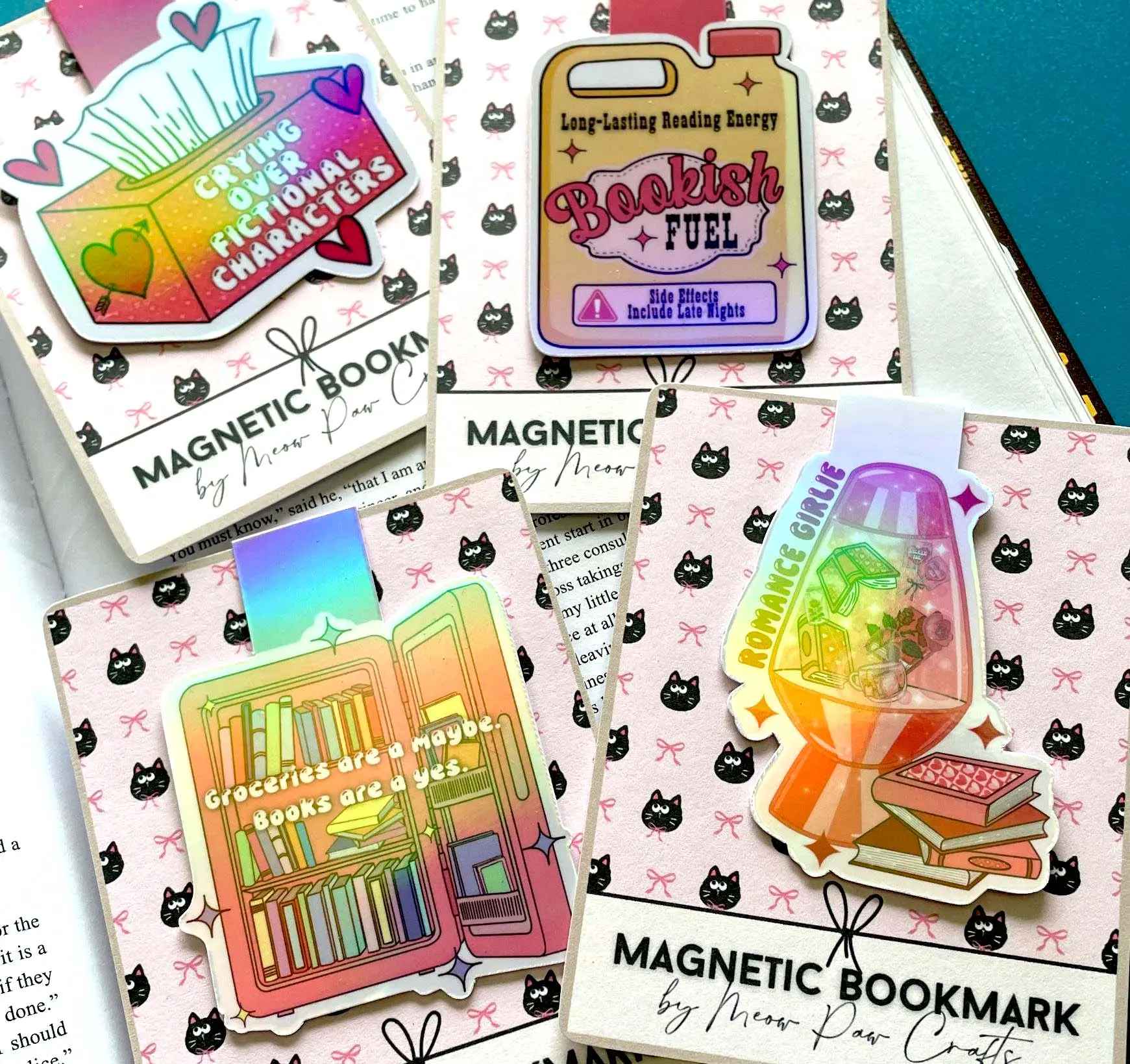 Bookish Magnetic Bookmark, Cute Holographic Bookmark, Romance Girly Gift for Book Lovers Reader