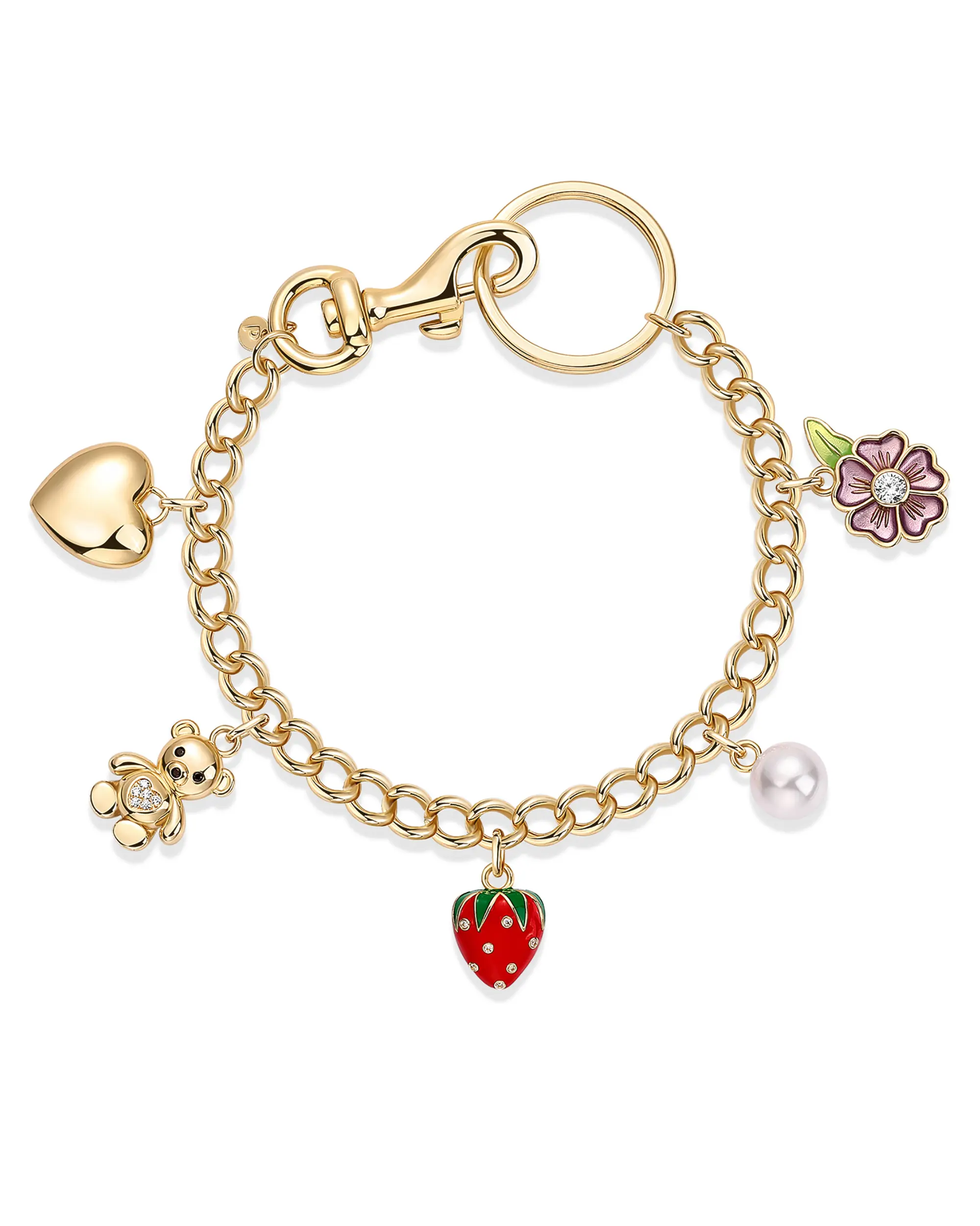 - Features a 10.5" gold bag charm chain with cute purse charms.