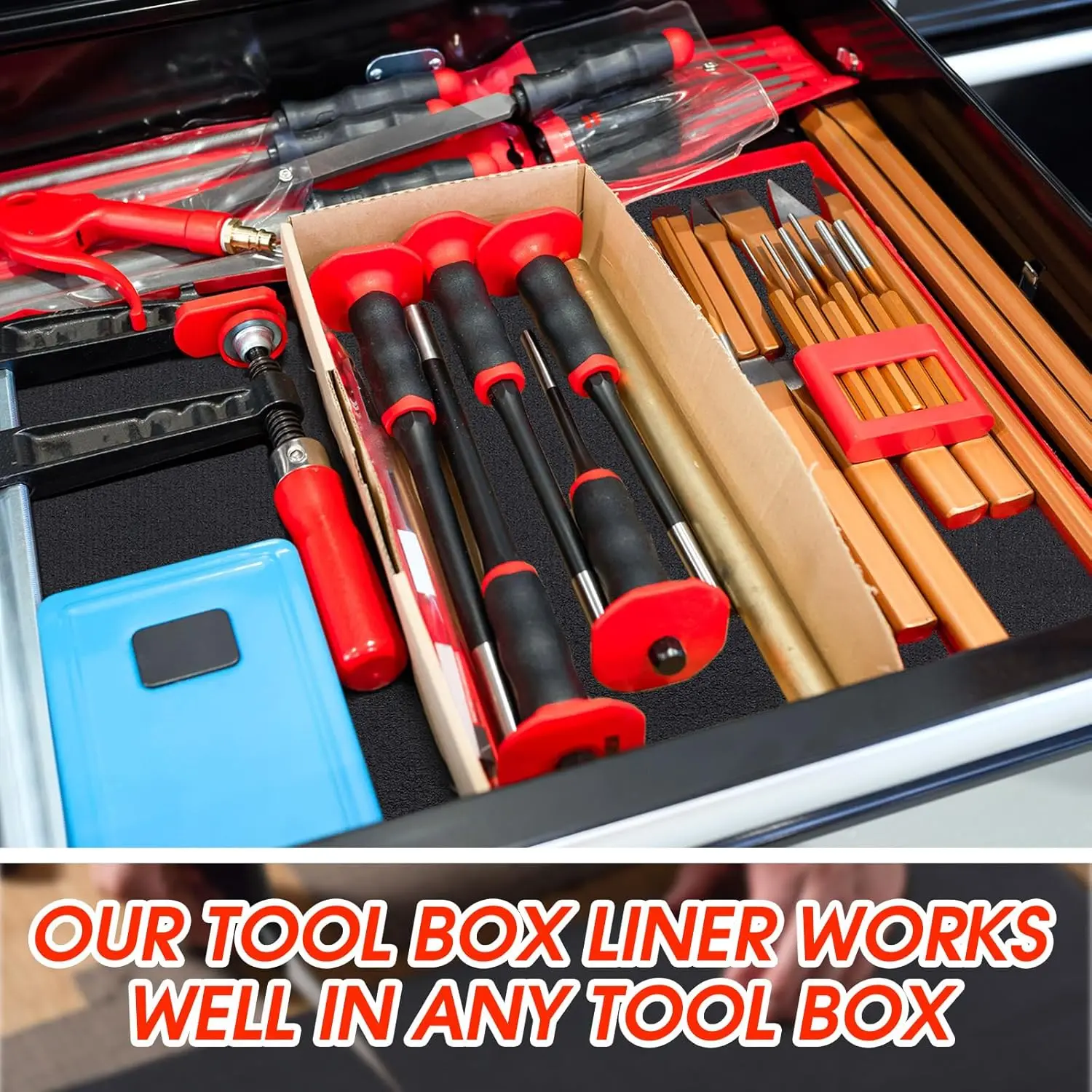 ·Wide Application: this tool box mat expands your scope of use with its wide application; The liner assures versatility, regardless of whether you're organizing your garage, workshop, tool box, file cabinet, drawer, or even your kitchen drawers; Set away the shackles of limitation and explore the world of organized tools with this liner