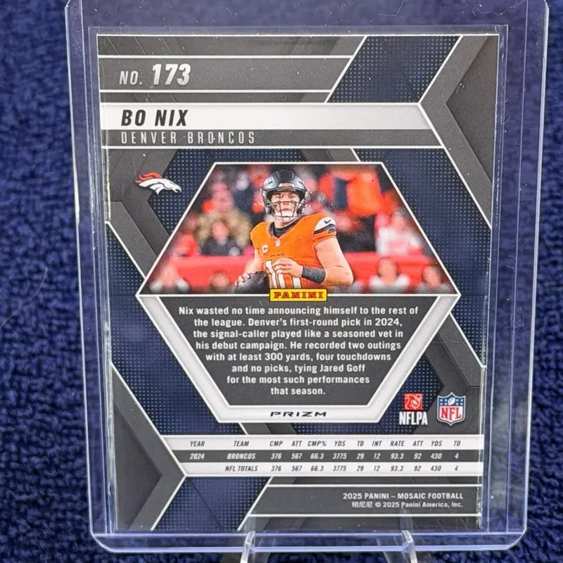 Panini 2025 Mosaic BO NIX #173 Reactive Purple Mosaic Prizm Denver Broncos Football Trading Card