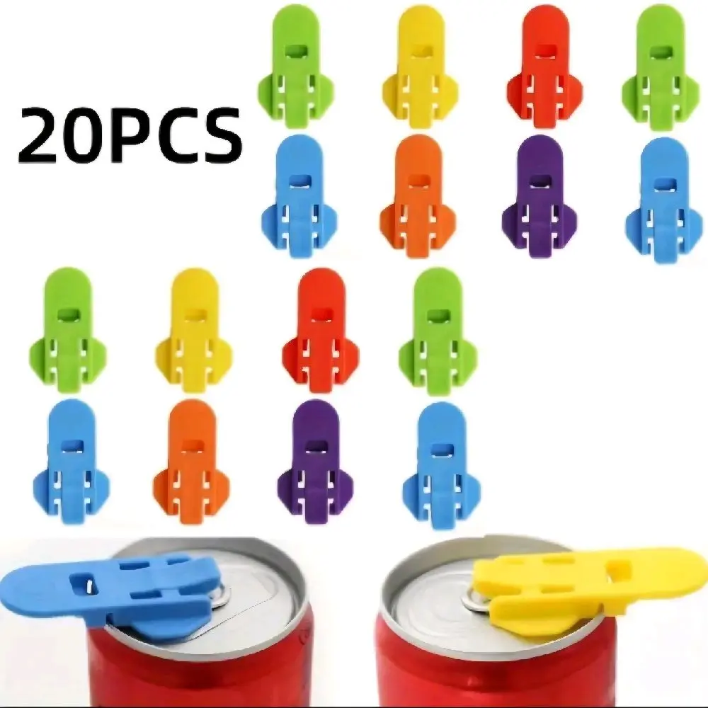 This set includes 20 colorful drink can protectors. Ideal for parties, BBQs, and beach outings. Each cap acts as a leakproof soda top ring opener tool. Perfect for pop, Coke, and beer tabs. Keep your cans dust-free and ready to enjoy.