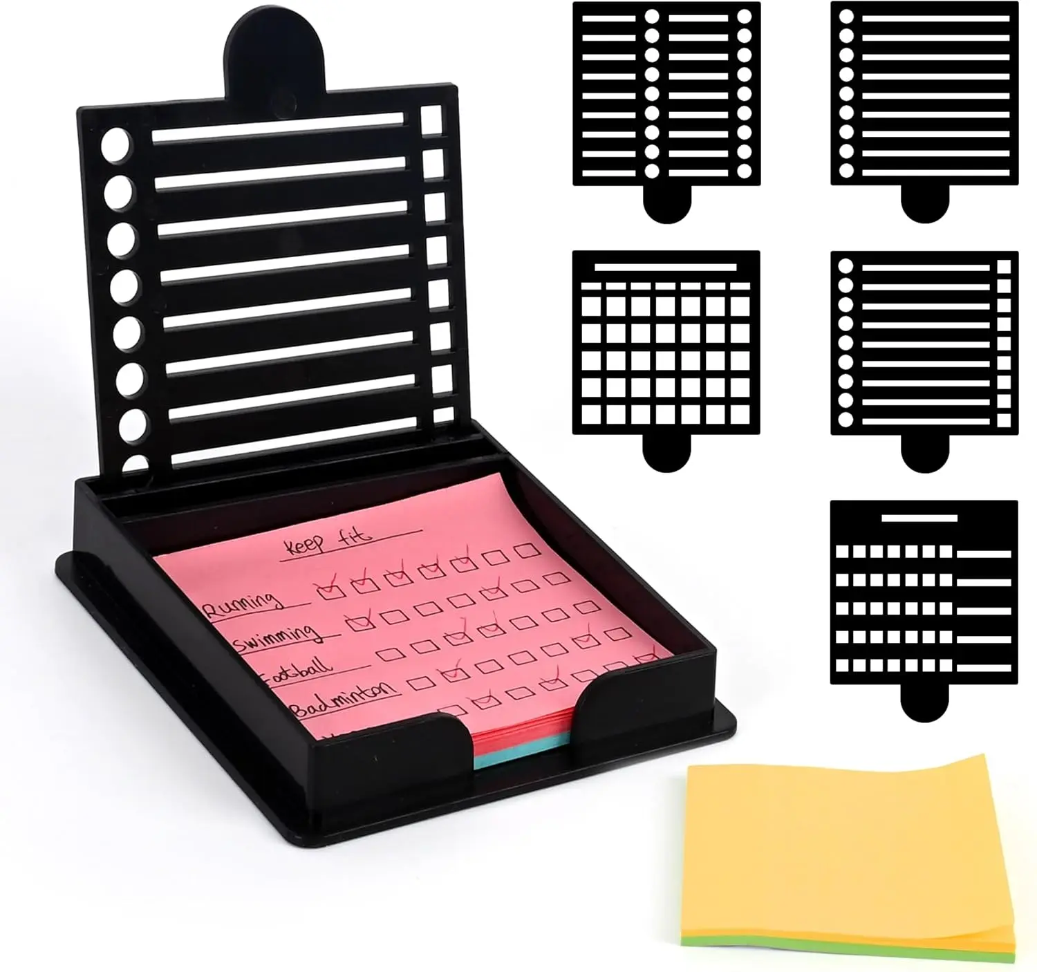 Stay on top of your tasks with this versatile sticky note holder. It features multiple templates, perfect for keeping your workspace tidy and visually appealing. The five functional templates help you organize daily, weekly, and monthly tasks. Clear frames and lines promote structured thinking, making it ideal for planning and managing to-do lists efficiently.