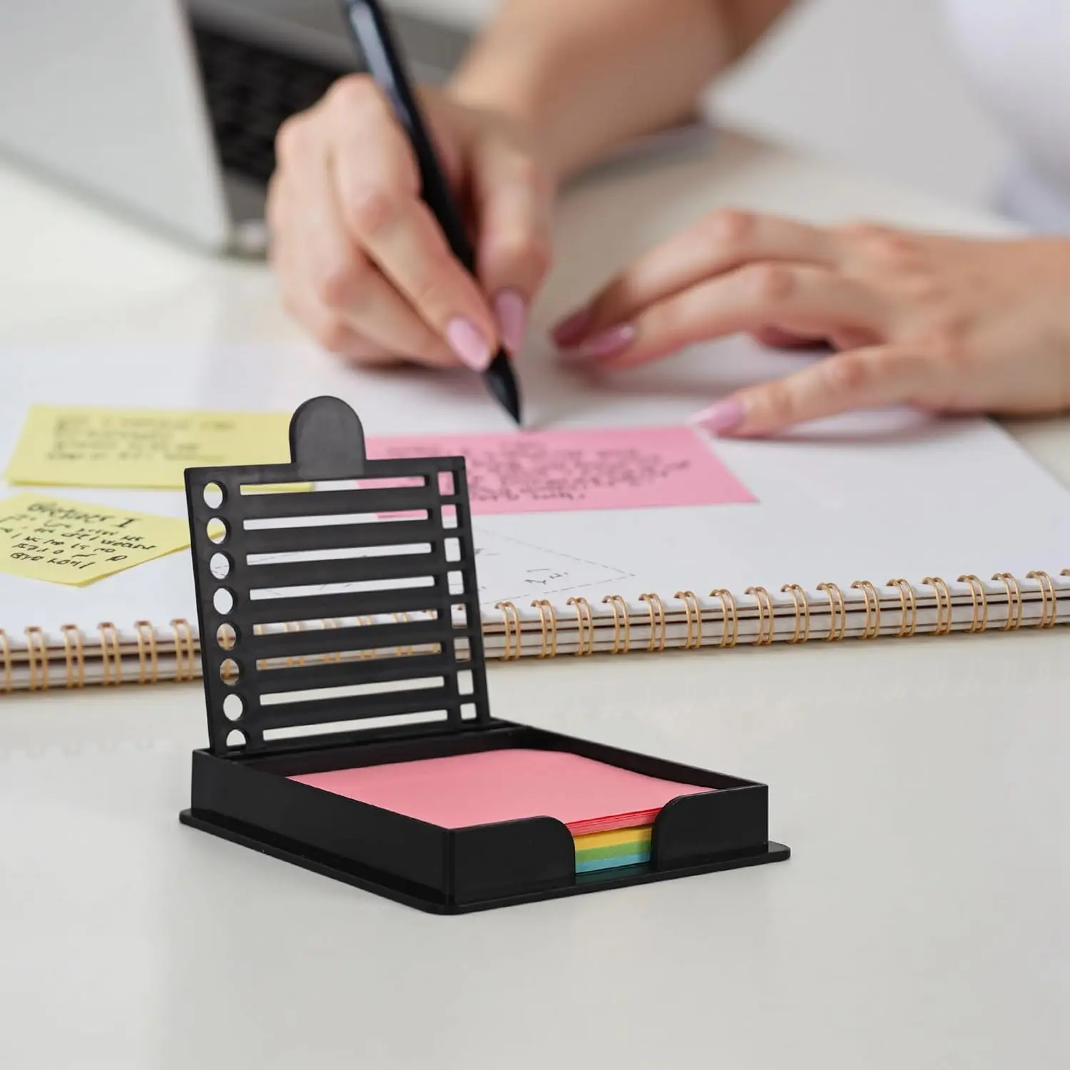Structured templates and clear lines make lists more visually appealing, helping you stay organized and reduce mental clutter. The holder includes a small handle for easy access and flattens curled sticky notes for smoother writing. Every detail is made for convenience and comfort during use.