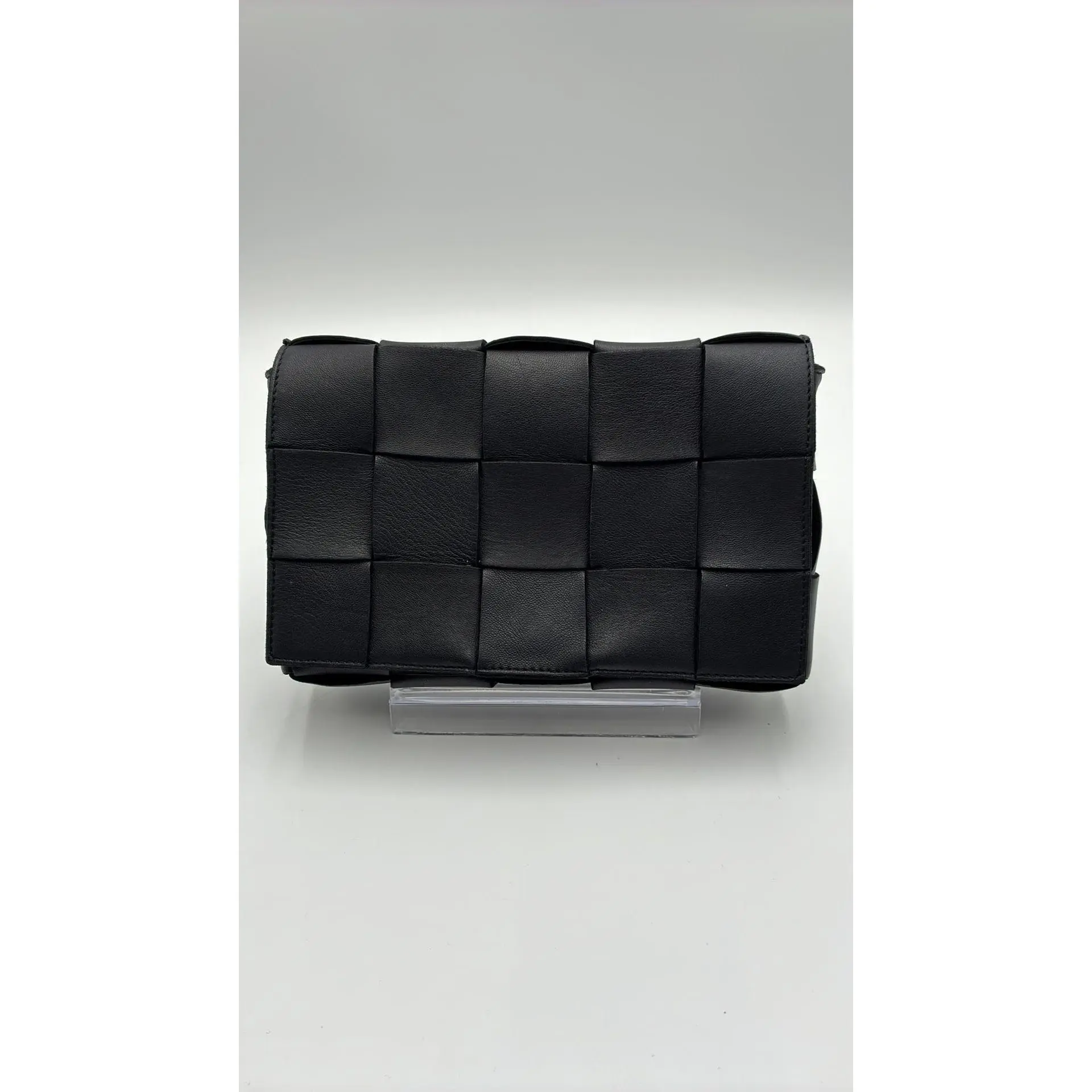 Pre-owned Leather Luxury Bags & Accessories Bottega Veneta Cassete Intracciato, Crossbody Bag, Black Date Code: B10102783M