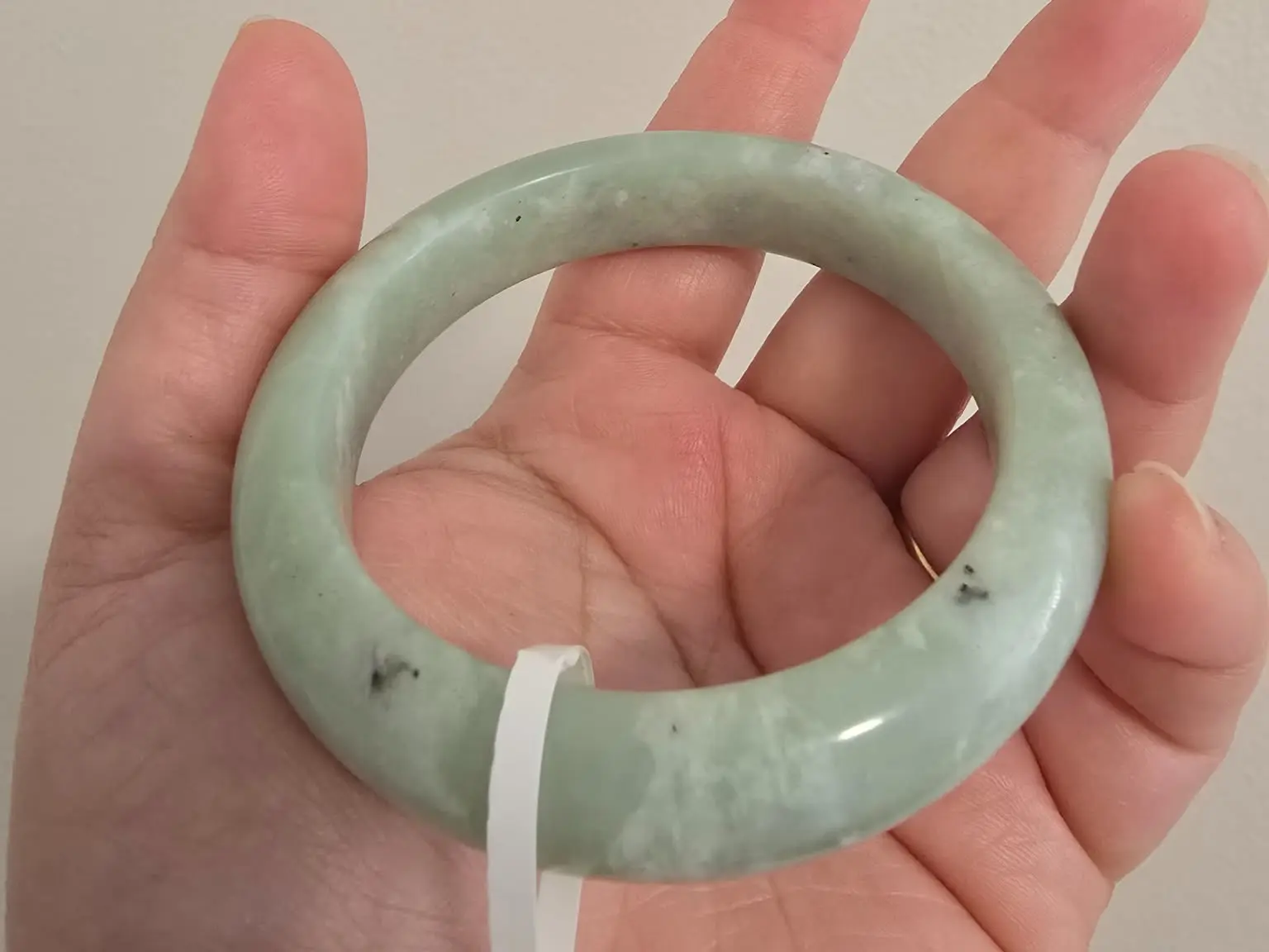 This natural Xiuyan Jade bangle features a soft, calming green tone with subtle natural inclusions that make each piece one of a kind. Smoothly polished with a gentle glow, it’s perfect for everyday wear or as a meaningful gift.