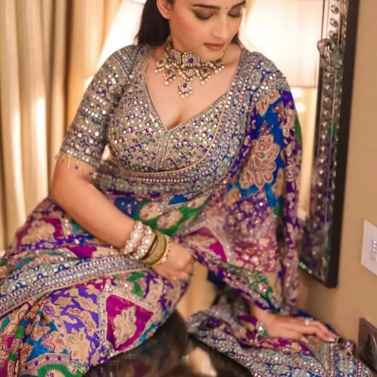 ✨ This saree features a multicolor Chinon silk fabric, perfect for any occasion. The mirror work adds a touch of glamour and sophistication. The design is ideal for those who appreciate traditional yet modern fashion. The saree's vibrant colors make it a standout piece in any wardrobe.